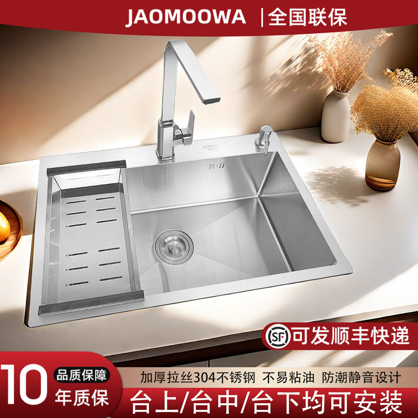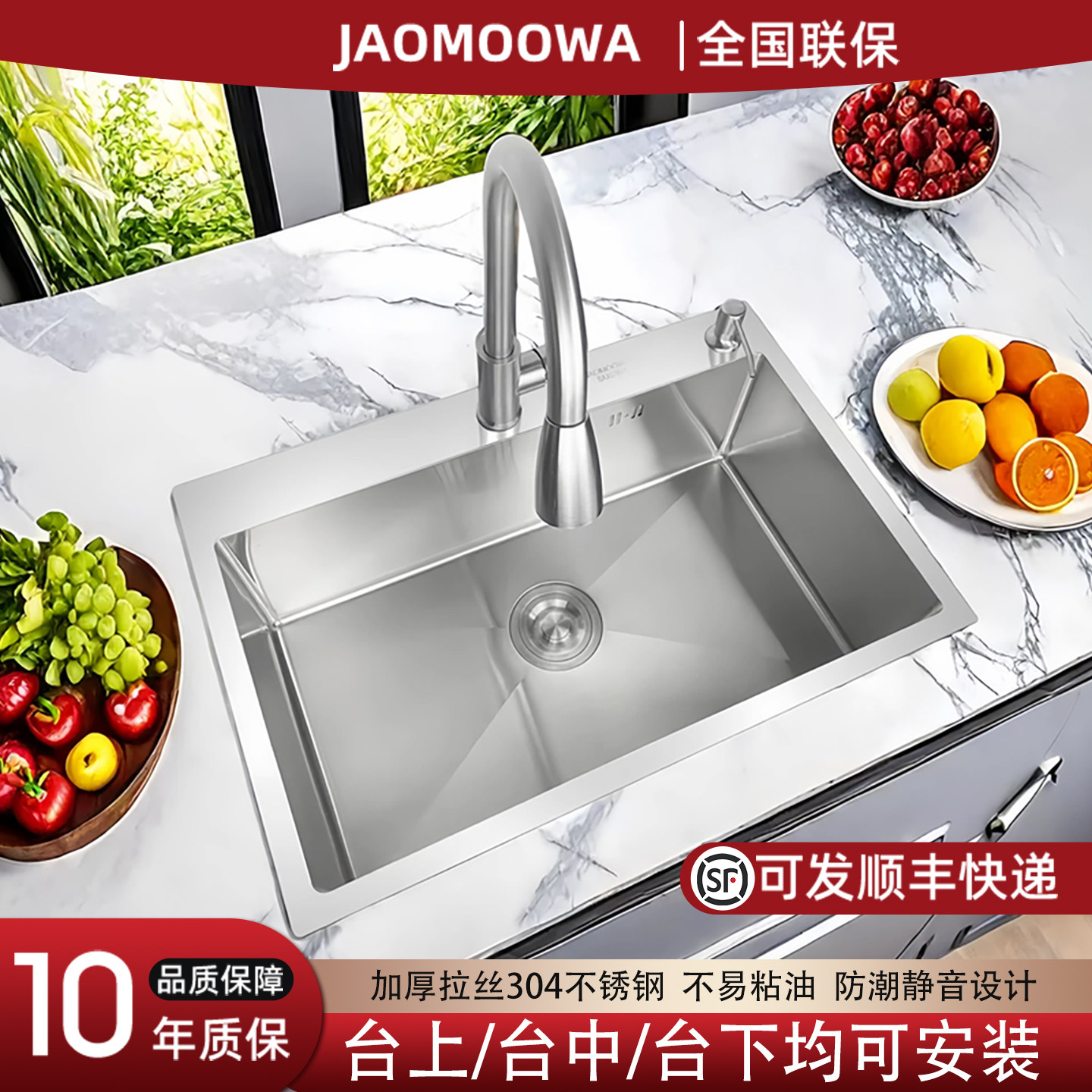厨房304不锈钢单槽一体加厚加深水槽 拉丝洗菜盆洗碗池套餐台下盆