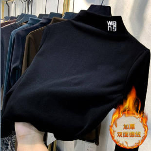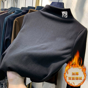 加绒加厚内搭保暖长袖 秋冬季 t恤 女300斤胖mm大码 德绒半高领打底衫