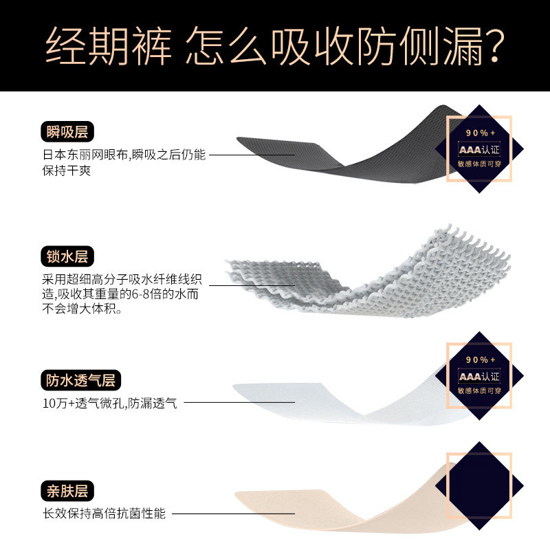 二代黑科技不用卫生巾生理裤 姨妈期月经期防侧漏免卫生巾月经内裤