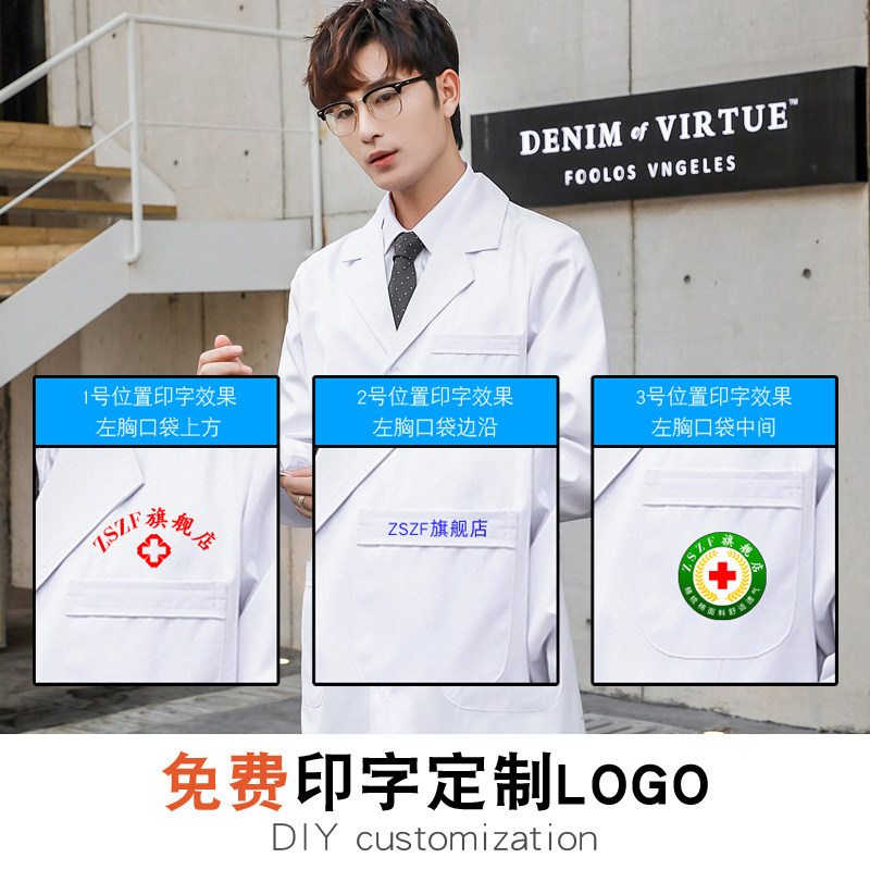 大卦护士服工作服 实验服医学生化学医生服医师短袖 白大褂长袖 男款