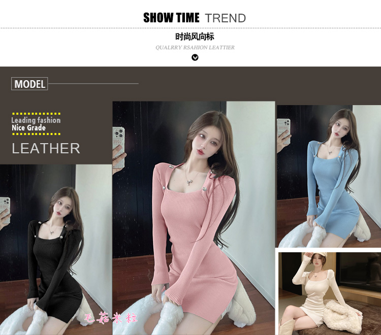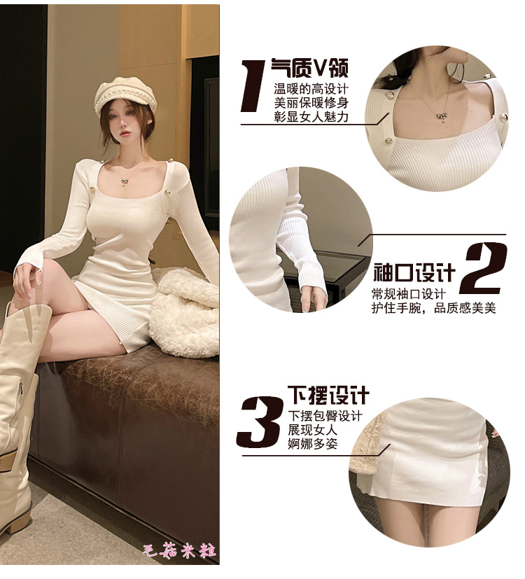 长袖 小个子性感包臀配大衣 打底裙 方领修身 针织连衣裙女秋冬法式