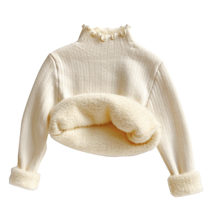 儿童一体绒毛衣2025新款 女童毛衣半高领加绒加厚女宝毛线衣 秋冬装