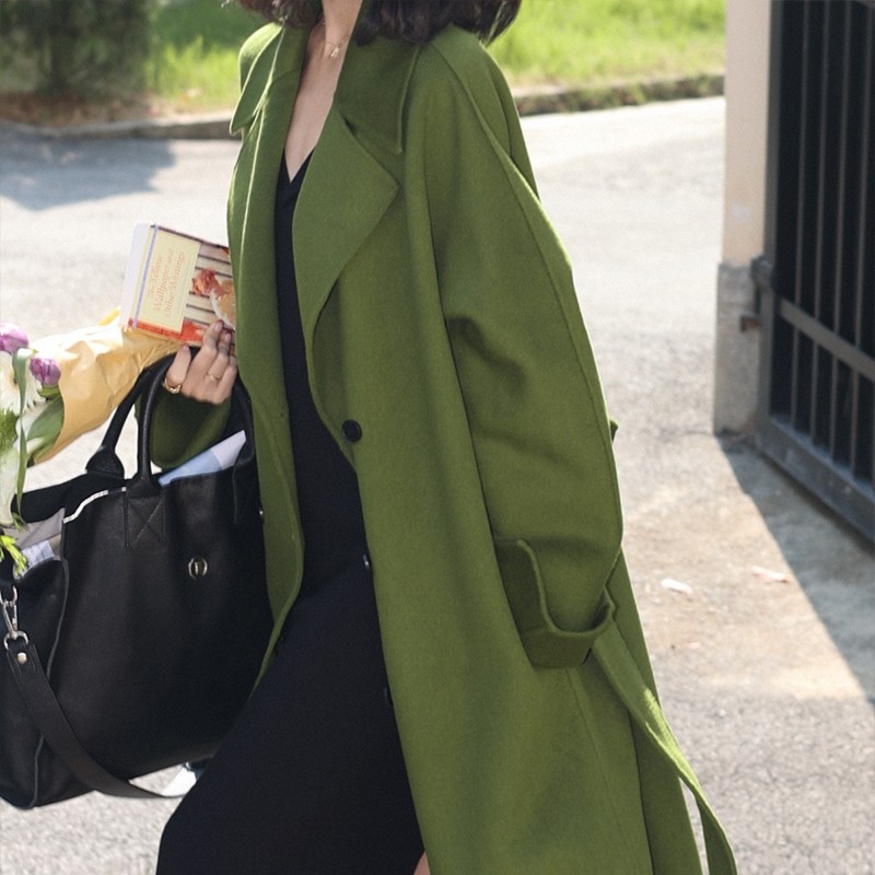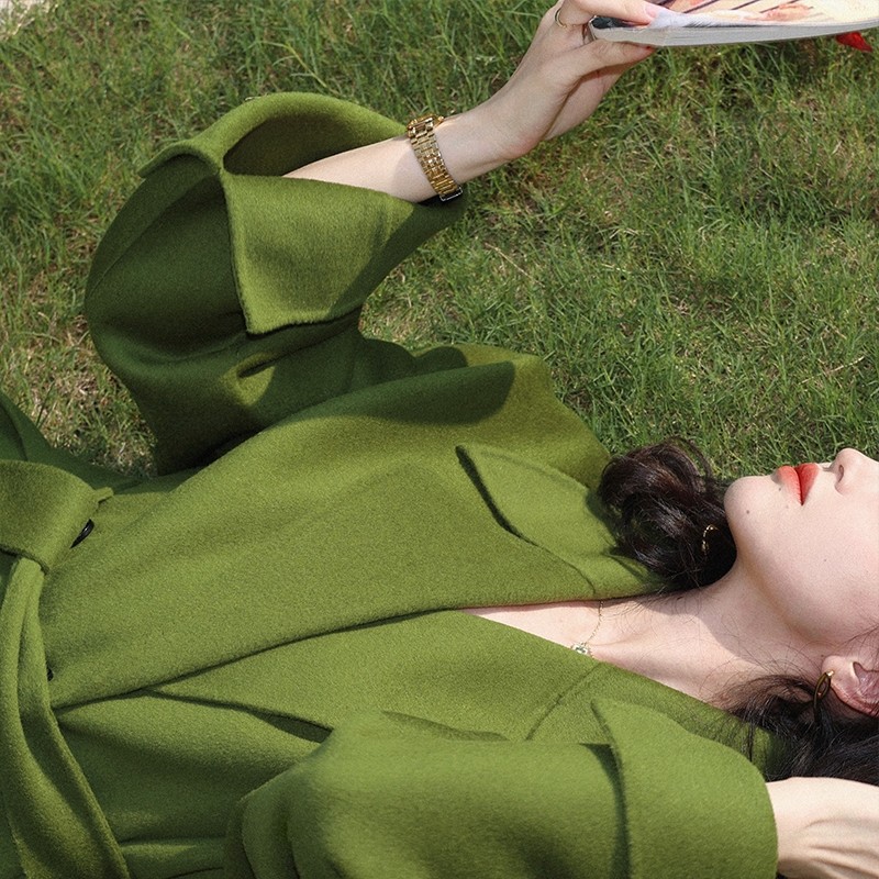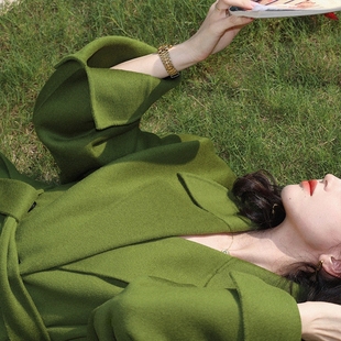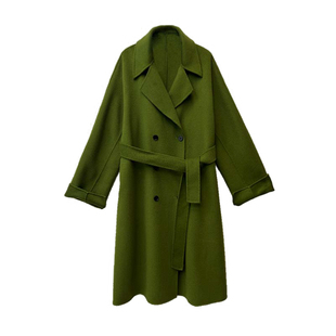 情侣带垫肩加厚风衣外套老钱风 双面羊毛呢子大衣男中长款 储格
