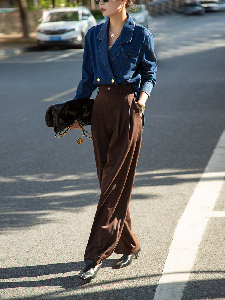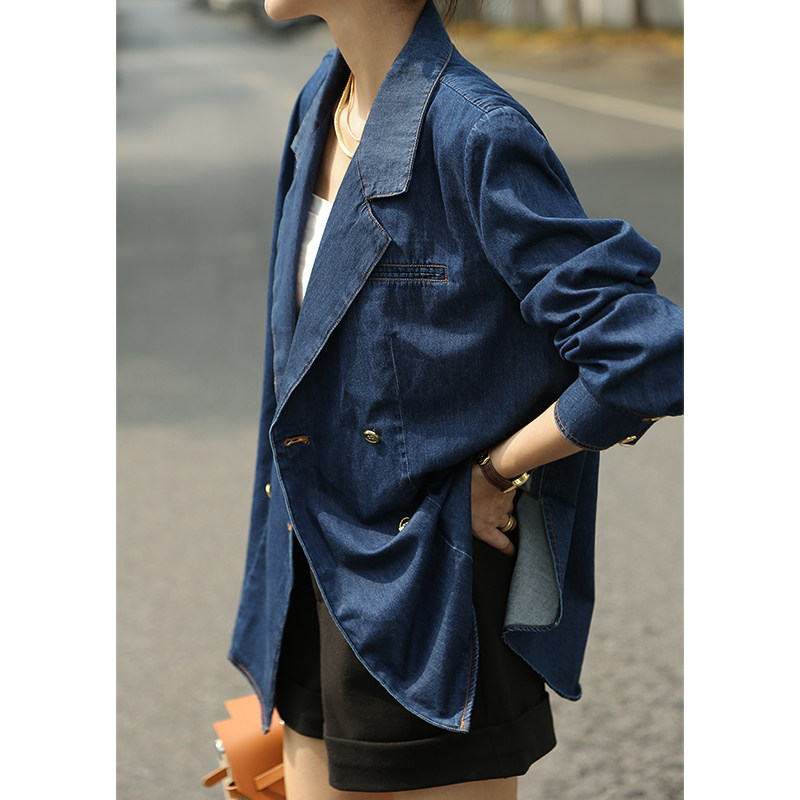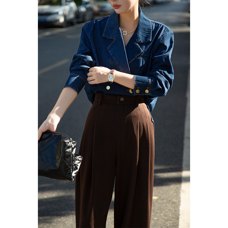 复古西装 春秋港风高级感法式 领衬衣 女设计感小众修身 叠穿牛仔衬衫