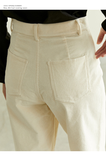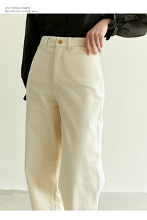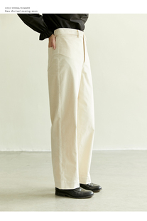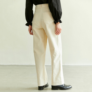奶白色重酵洗水洗棉灯芯绒高腰直筒长裤 穿 返场三季 trueidea经典