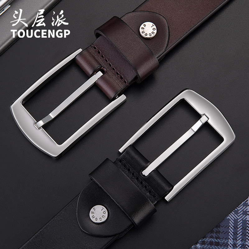 裤 304不锈钢皮带男士 商务正装 西裤 腰带 真皮针扣头层牛皮高档正品