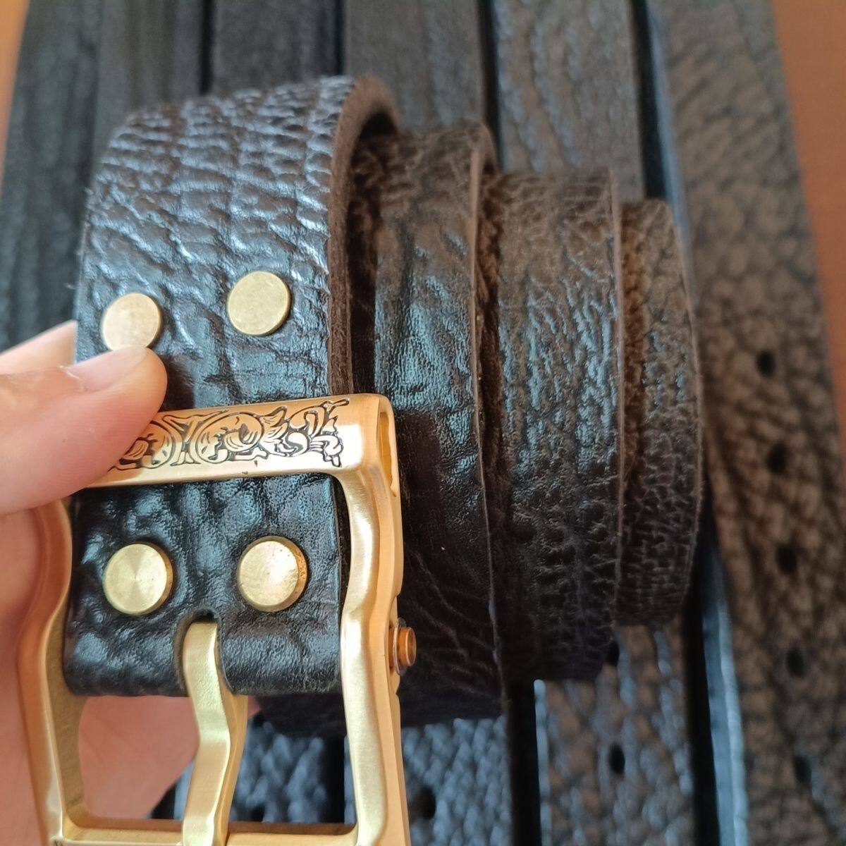 野牛皮腰带成功人士皮带加厚头层牛皮带复古纯铜男士 针扣手工腰带