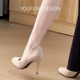 裸色小高跟鞋 春千金风圆头细跟绒面绝美气质高级不累脚 女2026新款