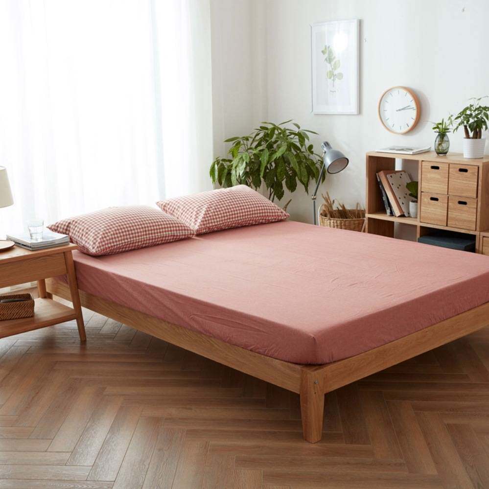 家纺水洗棉单人双人床笠单件简约纯色床单床罩单品1.8F^