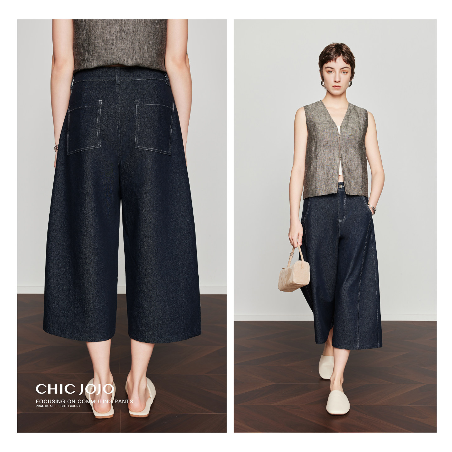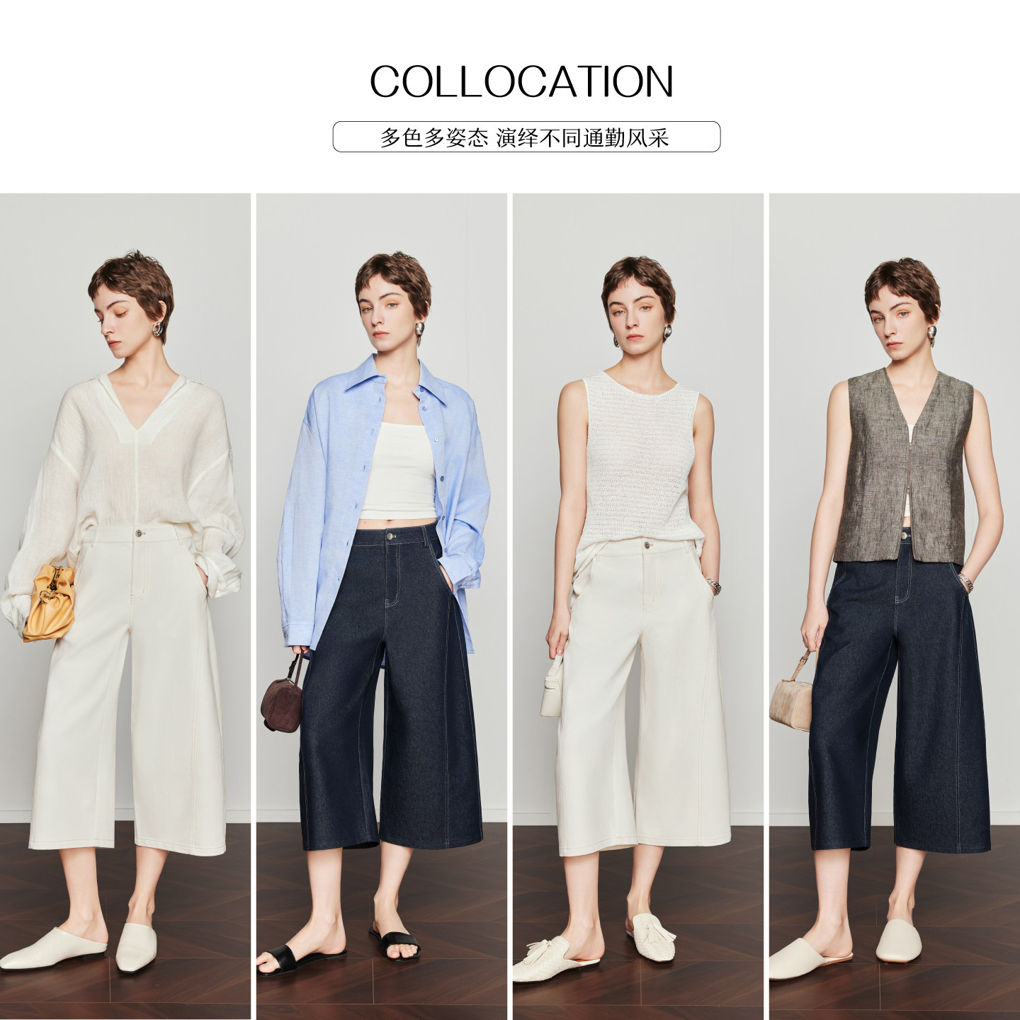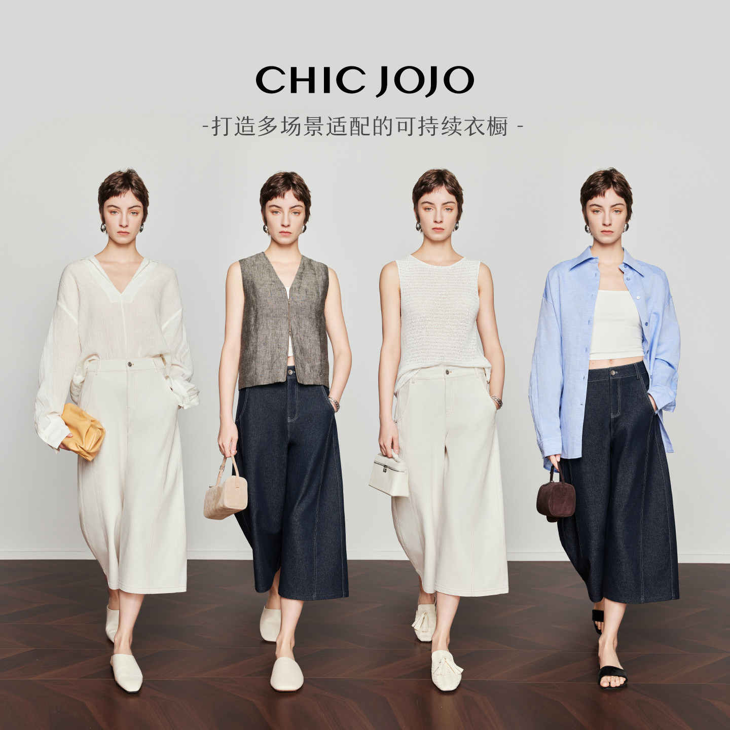 女26夏新款 CHICJOJO白色休闲裤 阔腿裤 仿牛仔八分裤 清风日程