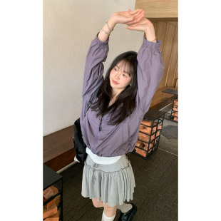 紫色防晒冲锋衣轻薄休闲连帽女春季 薄外套 春天 一三良品小个子