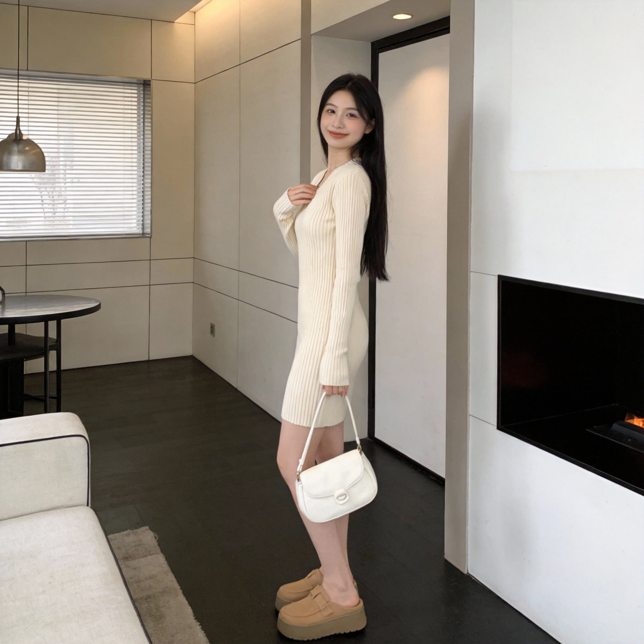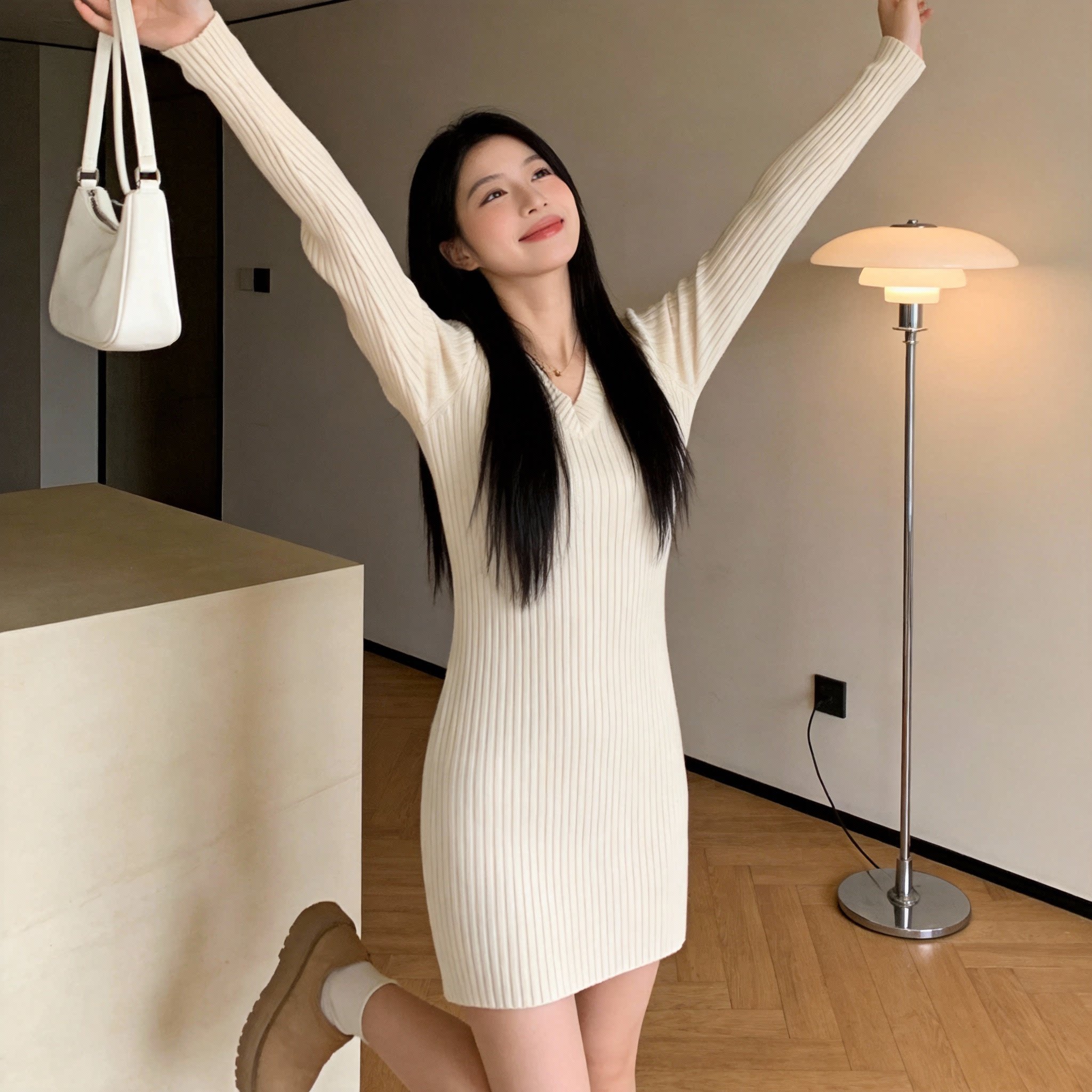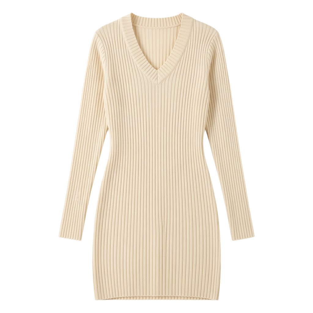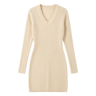 轻熟御姐风V领针织连衣裙女修身 打底毛衣裙女 显瘦收腰包臀裙长袖