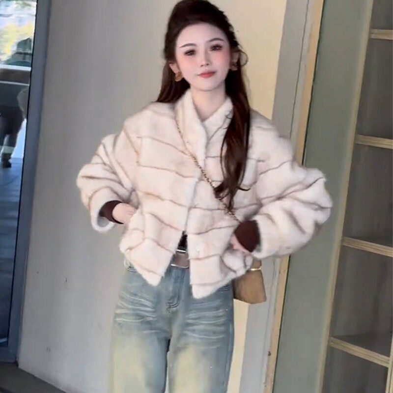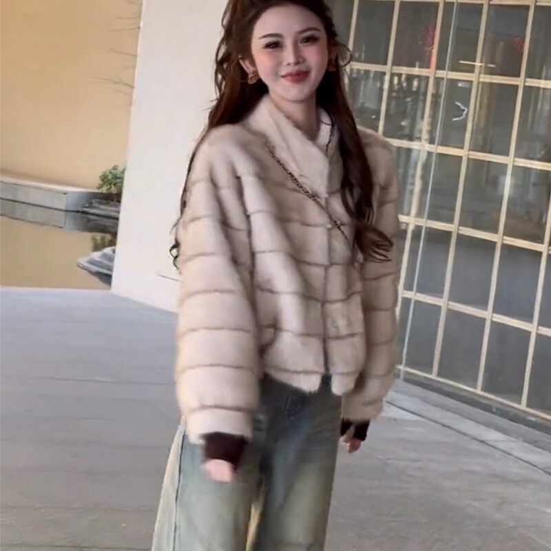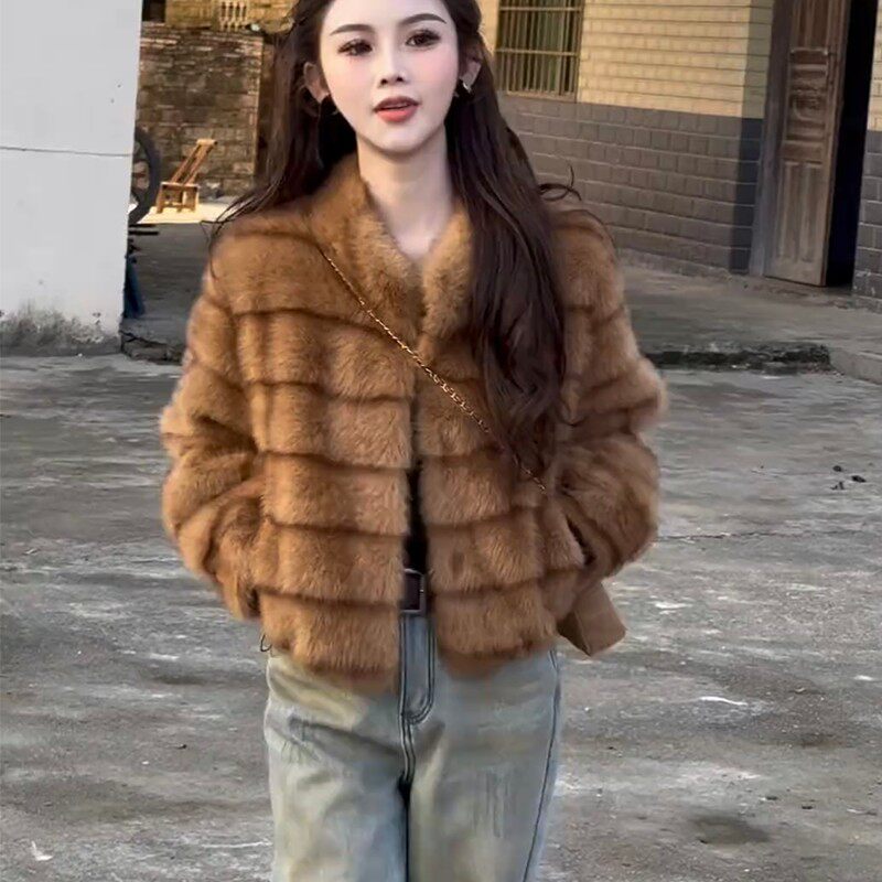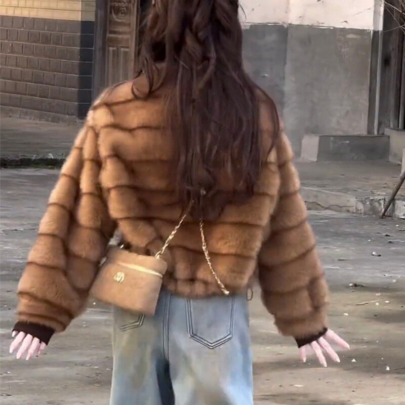 新品 轻奢仿皮草短外套女冬季 保暖立领毛毛上衣年轻减龄时尚