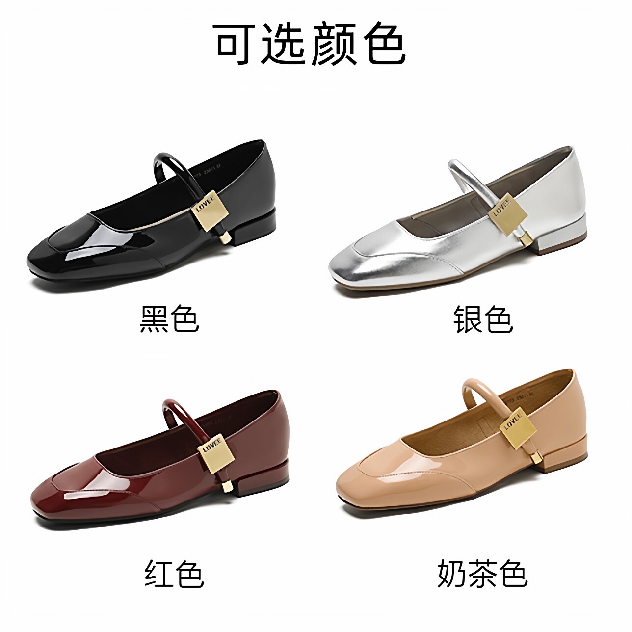 女2026春秋搭扣优雅低跟浅口单鞋 法式 复古风方头漆皮粗跟玛丽珍鞋
