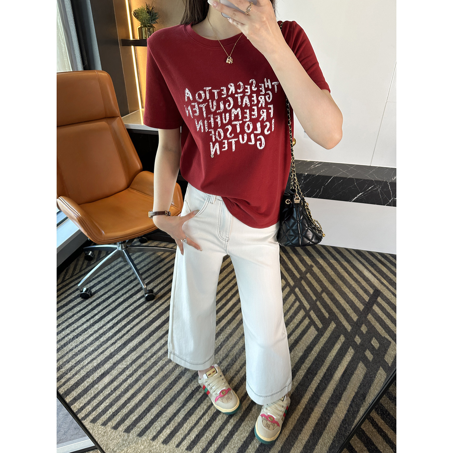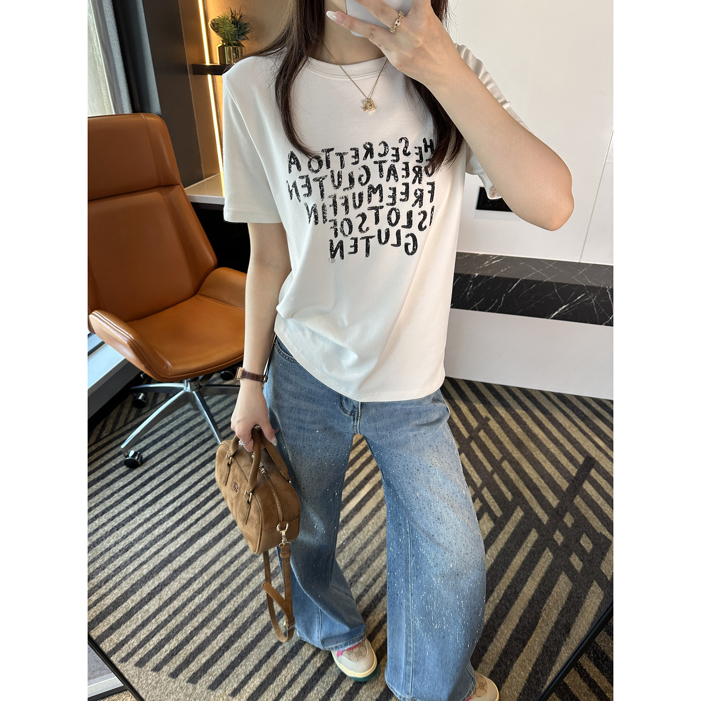 春季 T恤2026新款 慵懒松弛感百搭上衣 不规则字母短袖 满满设计感