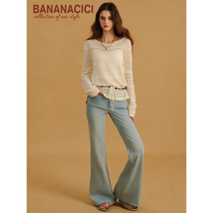 CICI2026年夏季 罩衫 新款 慵懒收腰针织衫 上衣 镂空度假长袖 BANANA