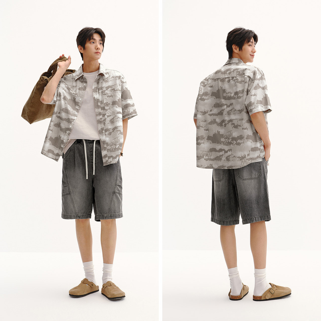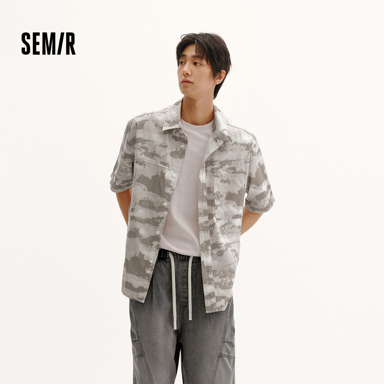 商场同款 凉感休闲牛仔上衣2026新款 森马短袖 男夏季 百搭 衬衫 森柔
