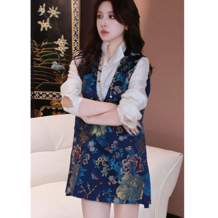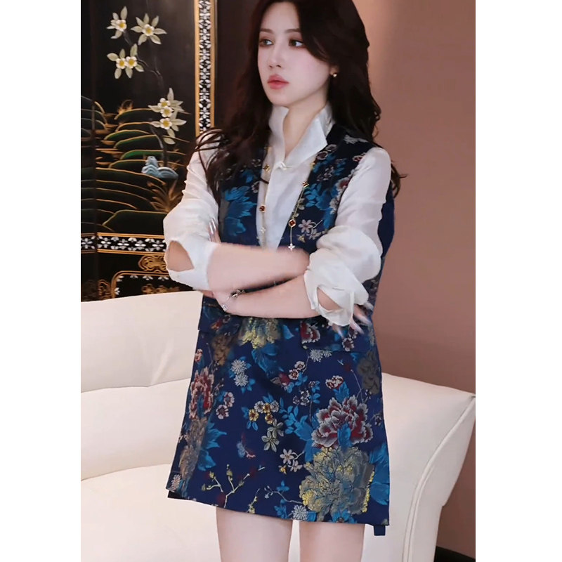 高级感提花马甲裙立领衬衫 新中式 女2026春新款 套装 两件套 国风时尚