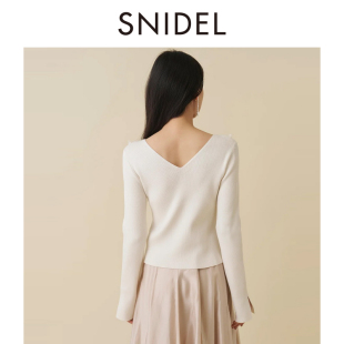 SWNT261183 针织衫 SNIDEL2026春夏新品 优雅蕾丝镂空花瓣V领长袖
