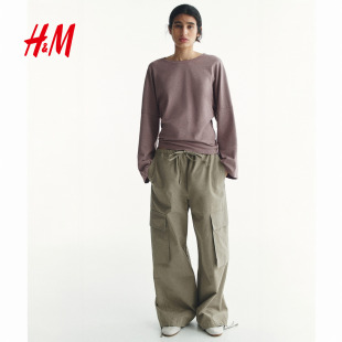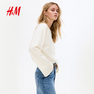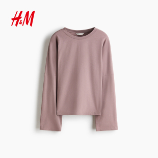 简约棉质长袖 HM女装 通勤宽松休闲时尚 新款 上衣1307772 T恤2026春季