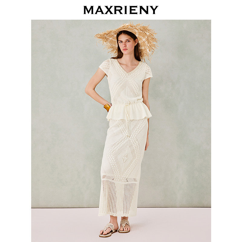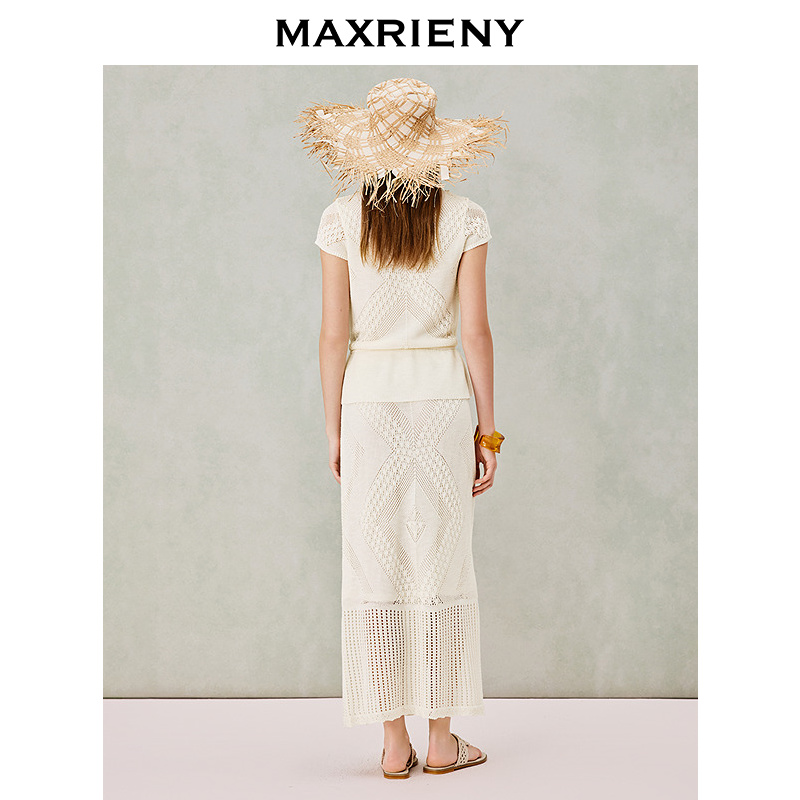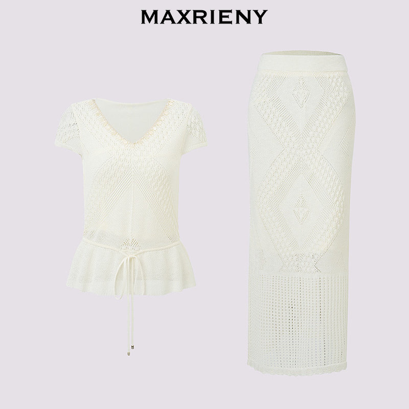 套装 MAXRIENY波嬉风针织上衣半裙两件套2026年春季 时尚 短袖 新款