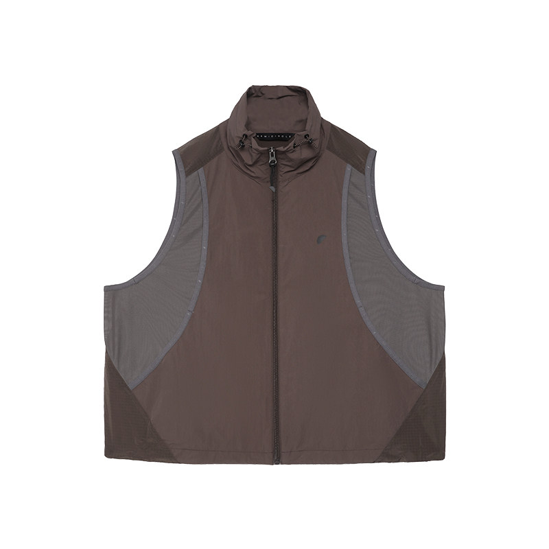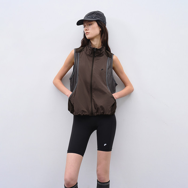 立领拼接马甲女 2026春宽松可调节短款 半圆原创设计女装 运动