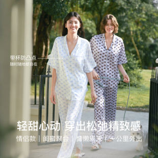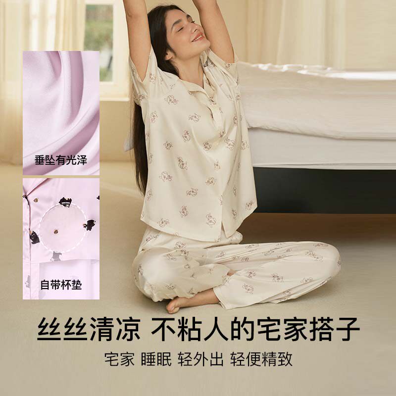 带胸垫缎面外穿睡衣新款 虞书欣同款 套装 长裤 ubras流光家居服短袖