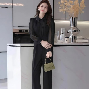 名媛显瘦连体裤 2026春季 时尚 女高腰连体衣直筒阔腿长裤 D3163 新款