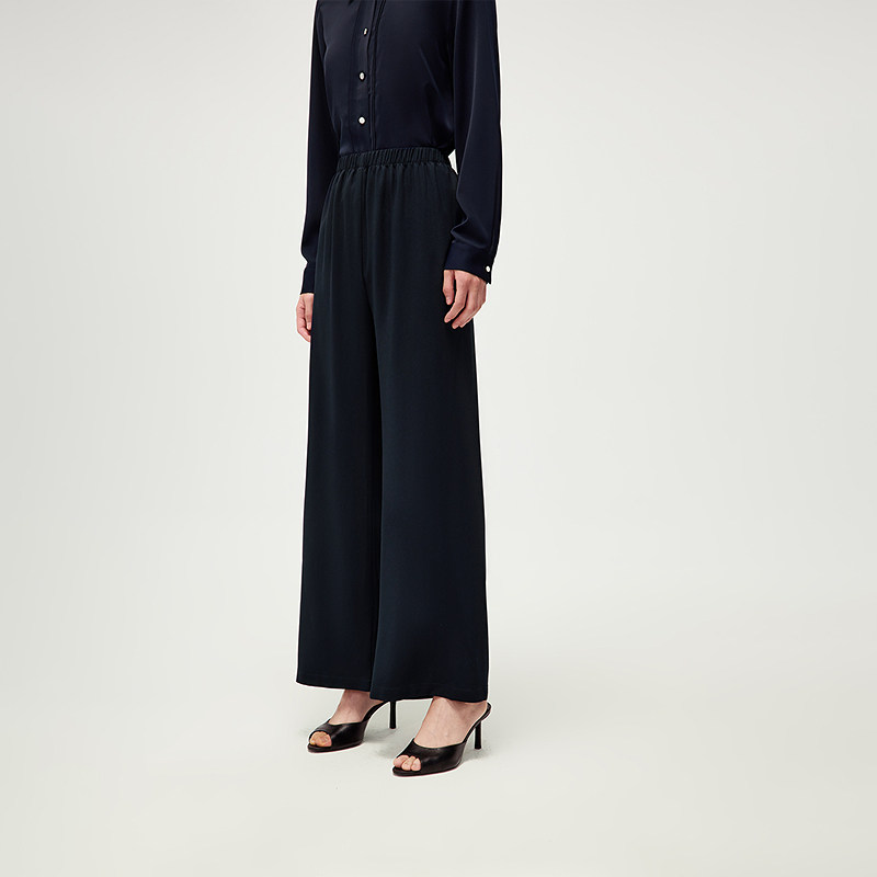 女装 春夏新含醋酸松紧腰有型阔腿慵懒裤 海澜之家休闲九分裤 HLA