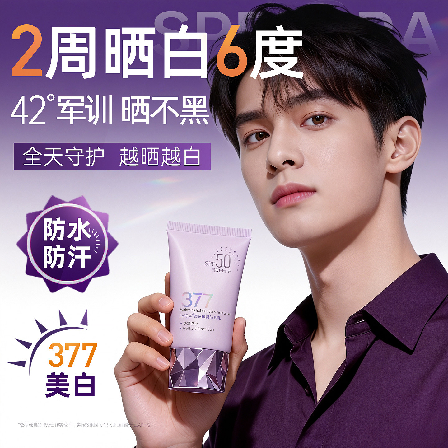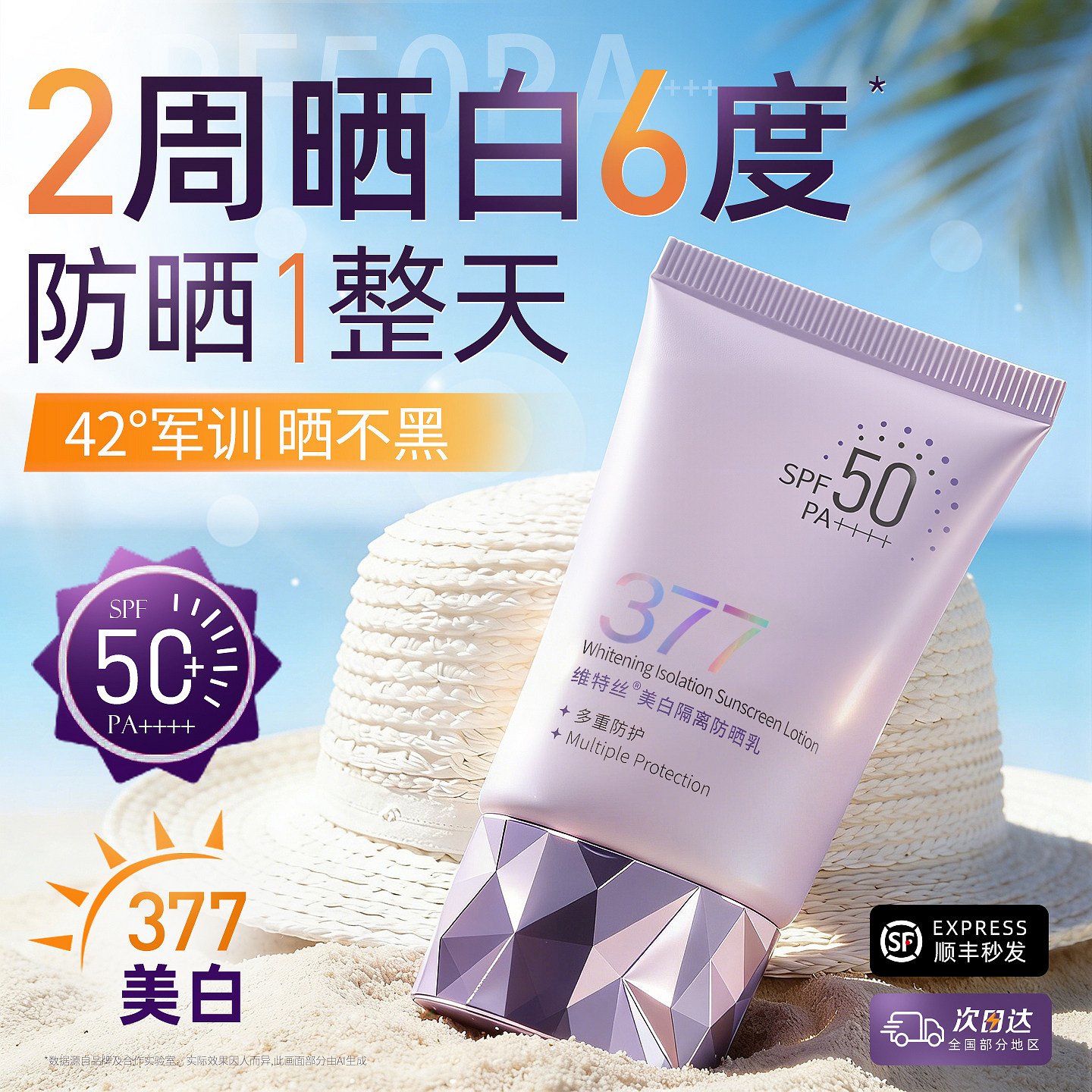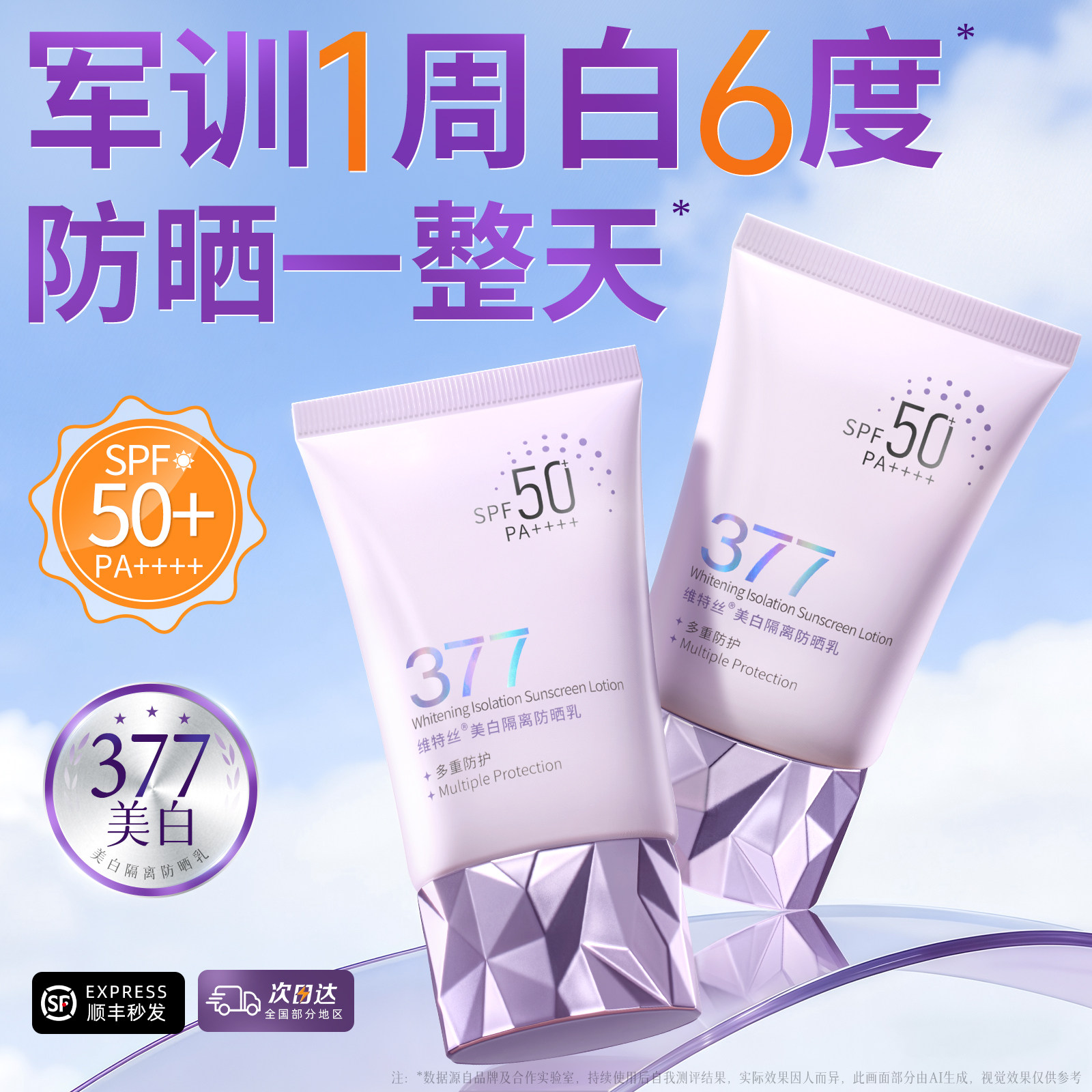 377美白防晒霜50倍防紫外线隔离乳军训专用男女生正品 官方旗舰店