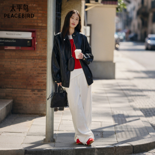 中长款 太平鸟PU外套复古廓形夹克截短式 达播专属