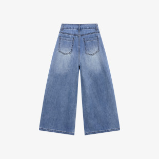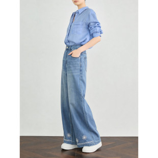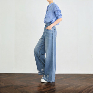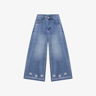 女士高腰直筒显瘦九分裤 新款 子 春季 百家好复古水洗刺绣阔腿牛仔裤
