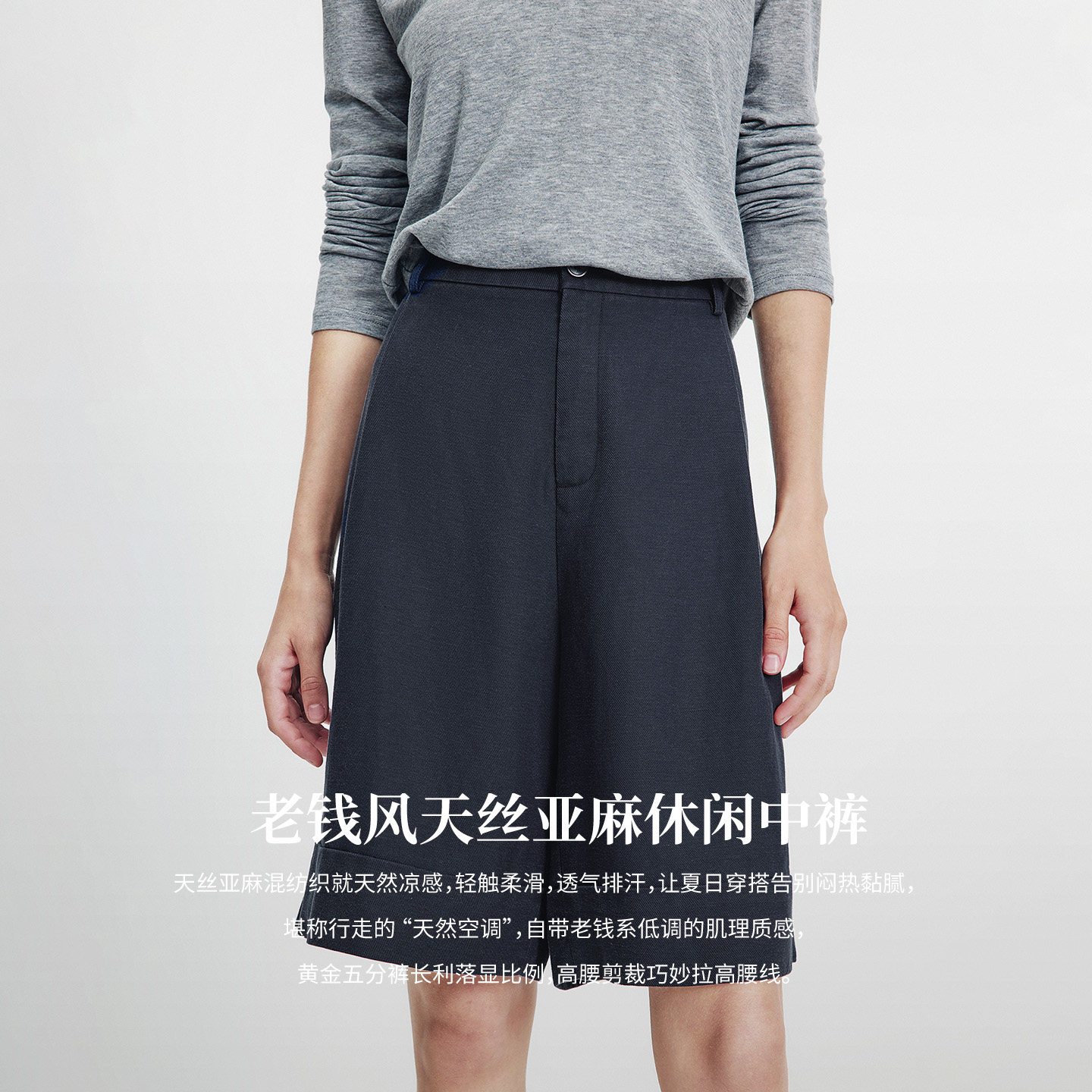 高腰百搭五分裤 Navigare意大利小帆船亚麻休闲中裤 女2026春夏新款