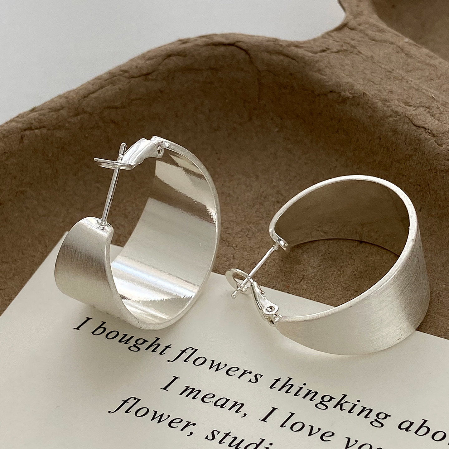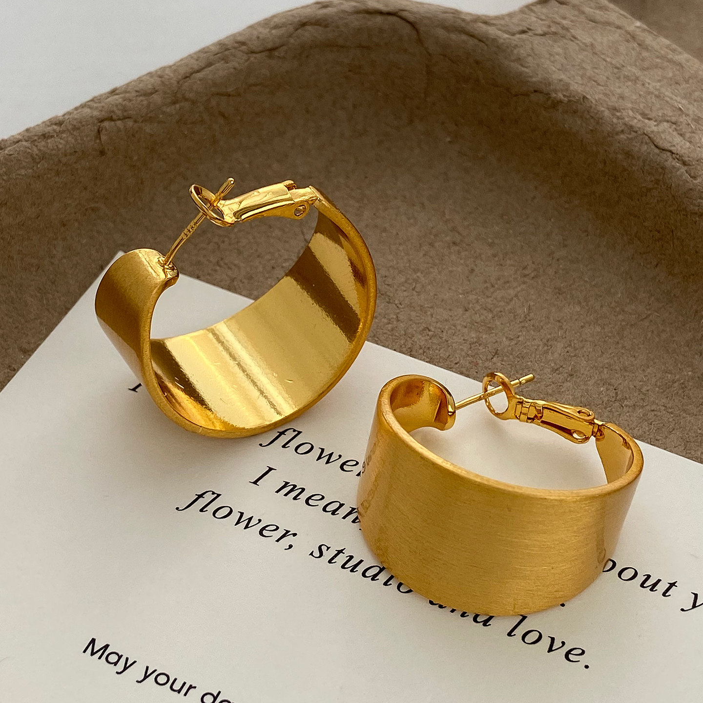 耳圈耳饰2025年新款 法式 设计师拉丝宽面大圈圈耳环高级感气质时尚