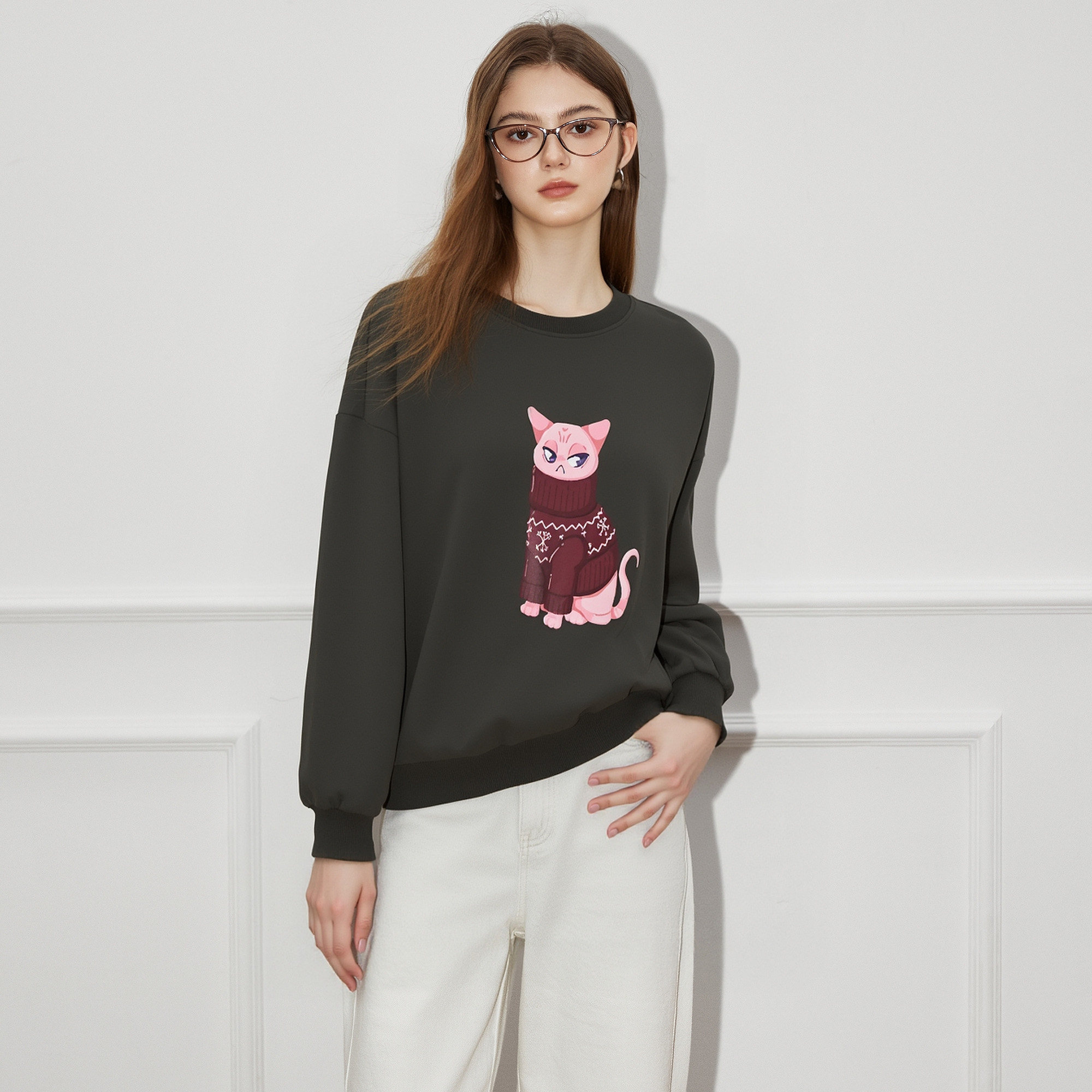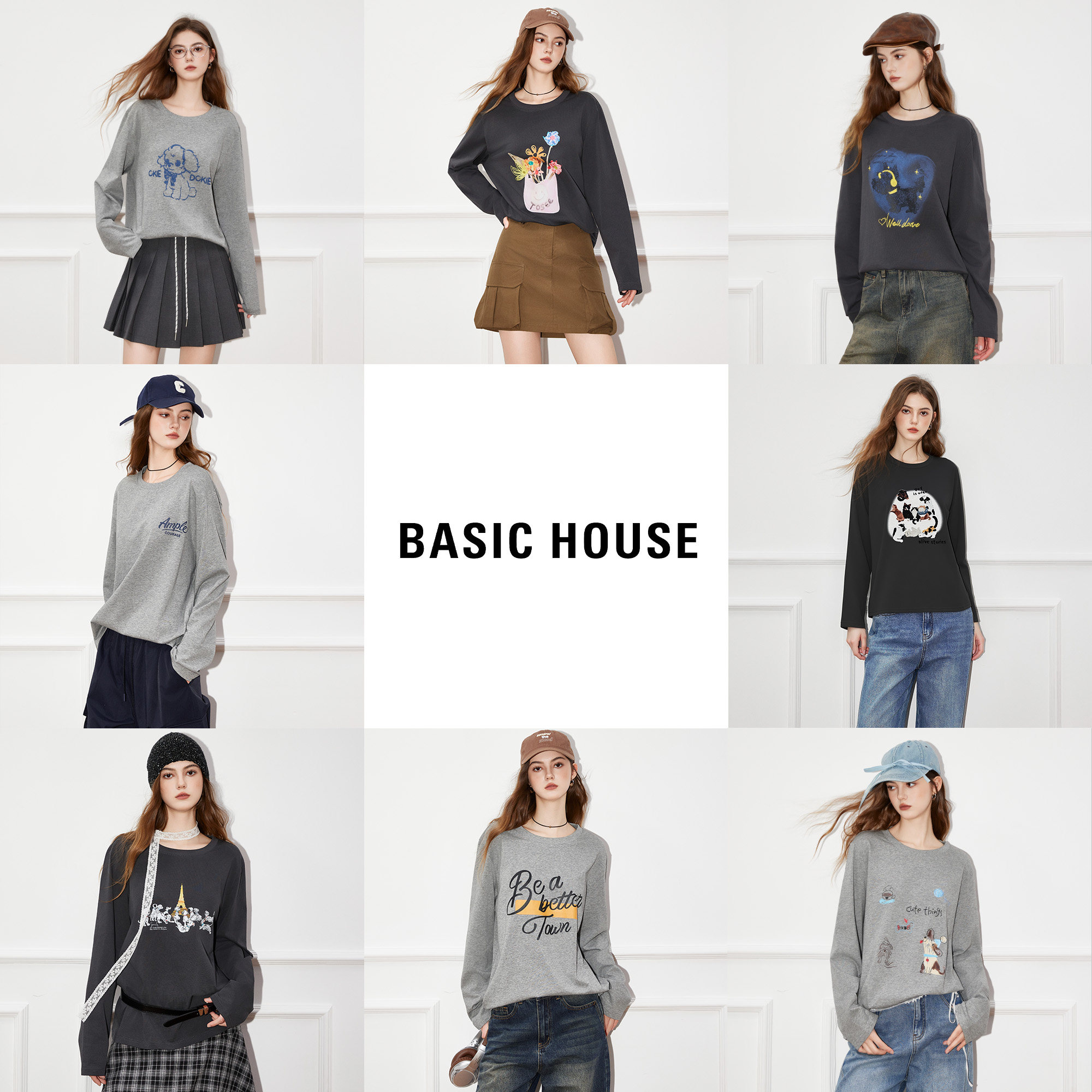 两件五折 长袖 Basic 百家好圆领卫女上衣2025秋新款 T恤卫衣 House