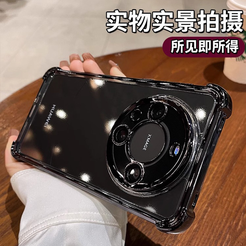四角气囊适用华为mate60pro手机壳带镜头膜mate70新款 防摔magic7套6 m40透明mt50e硅胶p70高级男女Pura70简约