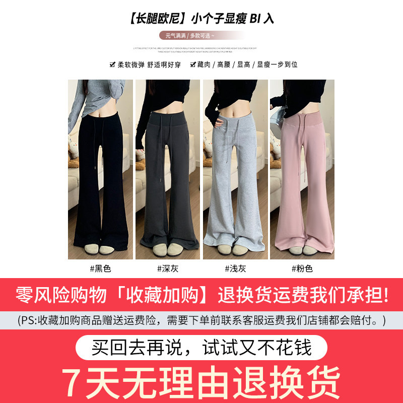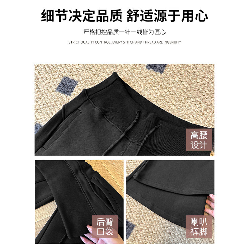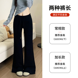加绒高腰垂感小个子lulu喇叭卫裤 2025新款 女秋冬季 黑色微喇运动裤