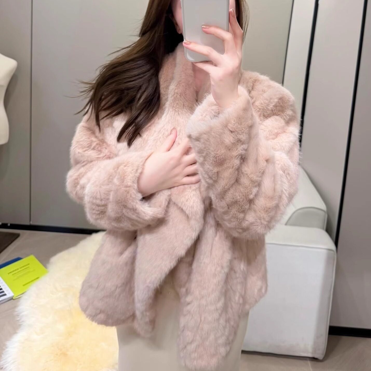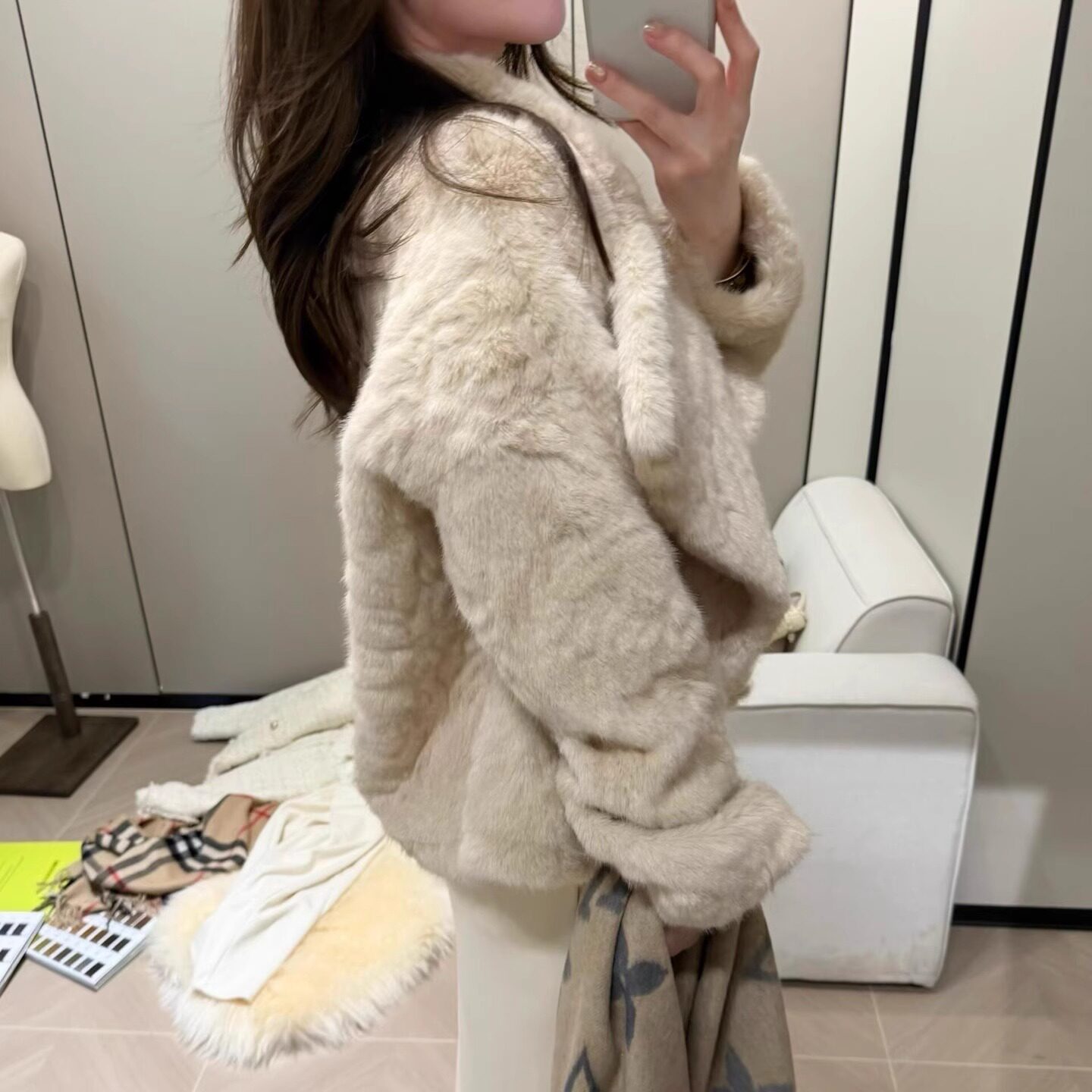 千金感软软仿小胡羊环保皮草 矜贵皮毛一体大翻领保暖加厚外套冬