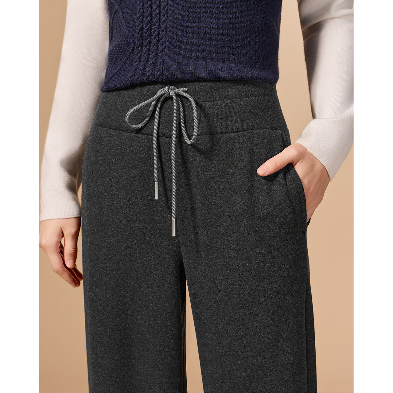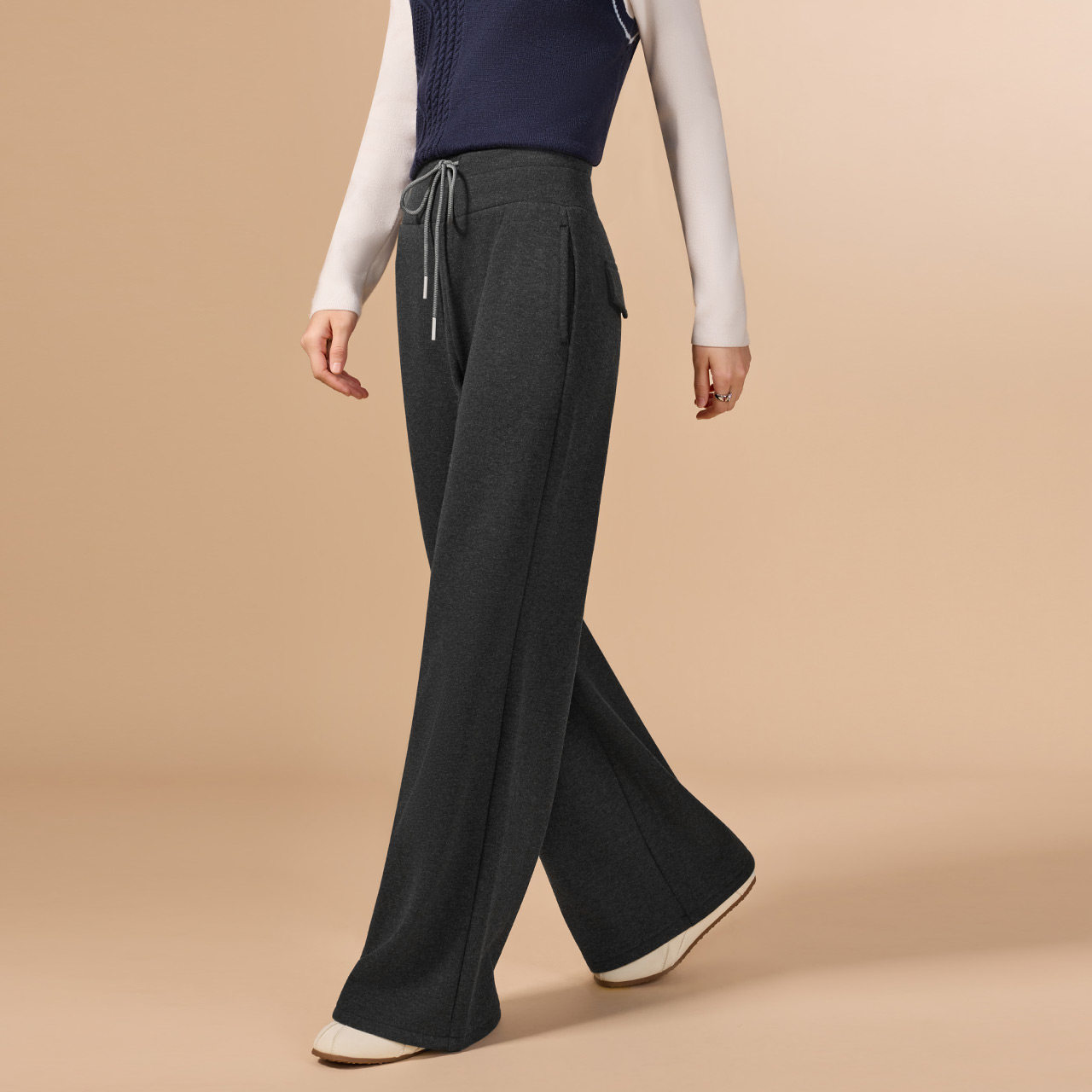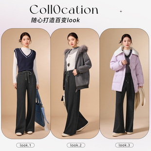 佐梦依加绒加厚休闲裤 弯刀阔腿裤