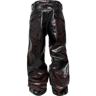 黑色油蜡pu皮巴洛克骷髅辑明线直筒皮裤 3MAN0N PCCVISION