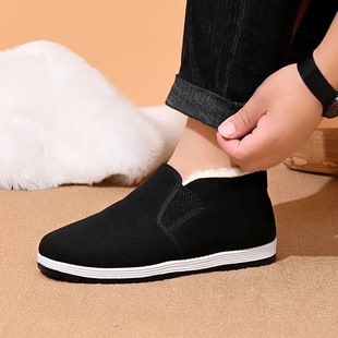 加绒加厚软底防滑耐磨暖和一脚蹬爸爸鞋 冬季 保暖老北京棉鞋