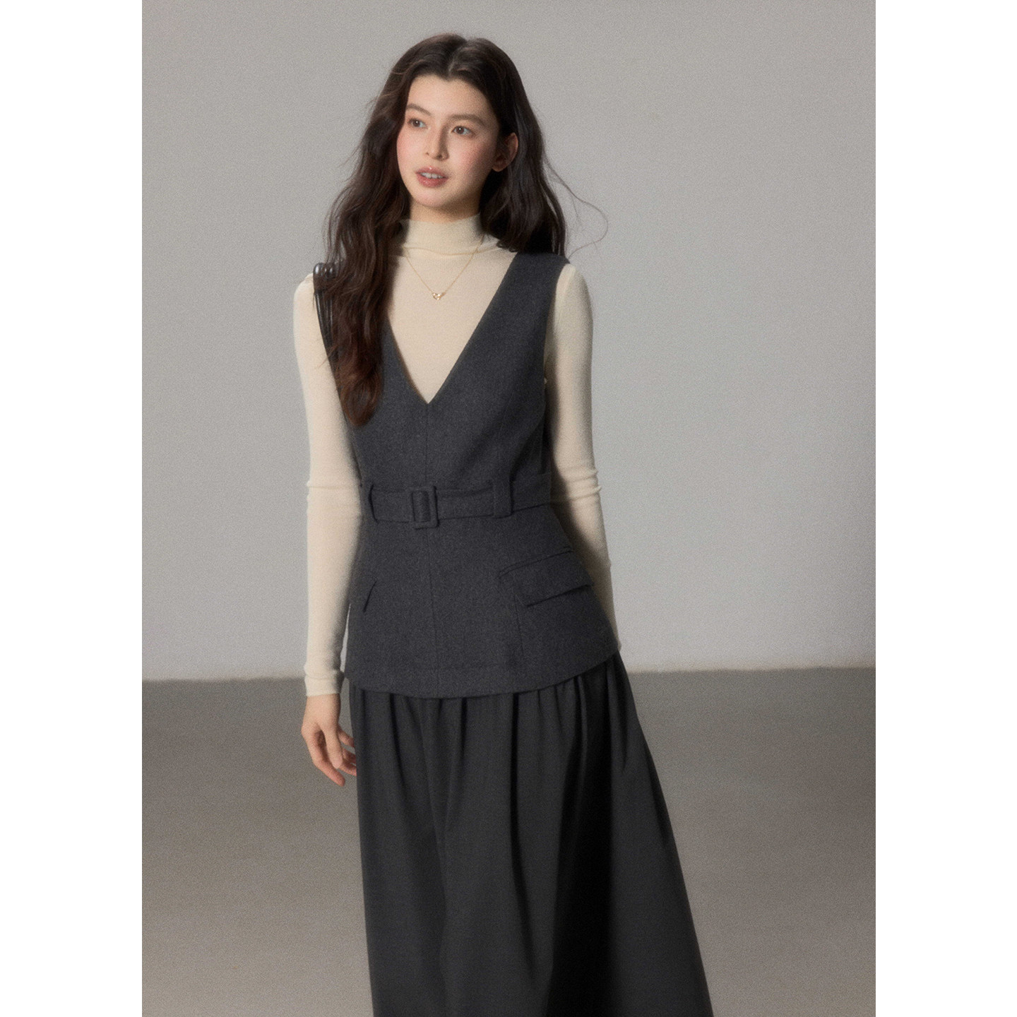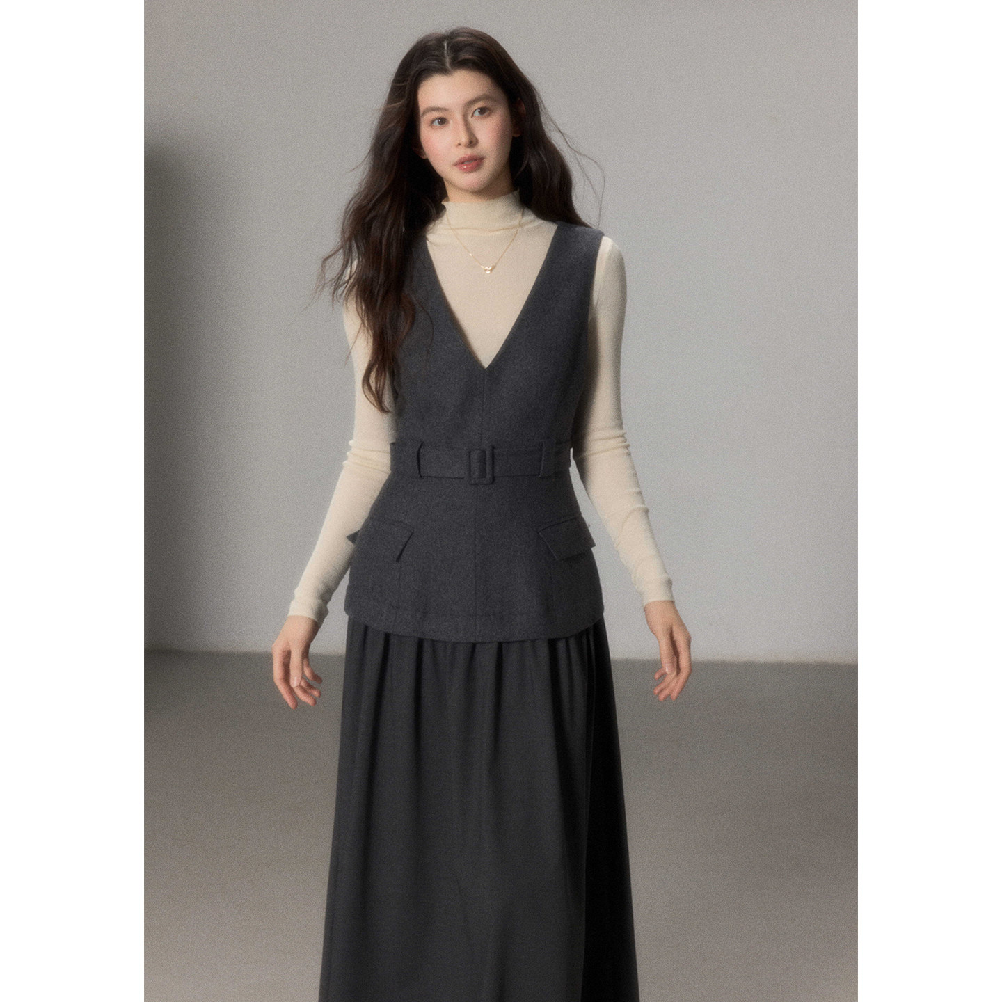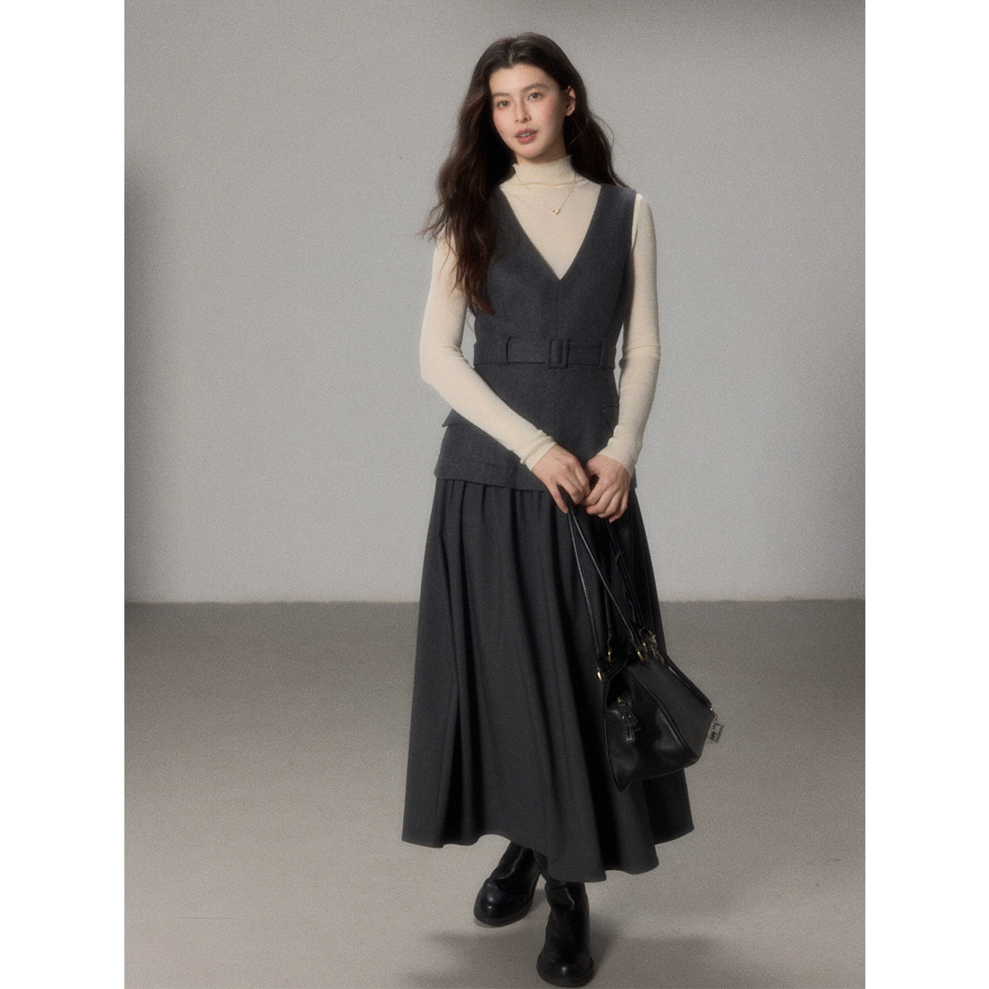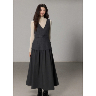连衣裙女冬季 羊毛呢拼接西服料无袖 叠穿背心长裙 素砚 贰羊设计