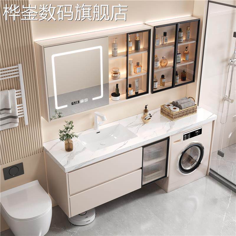 桦崟现代简约洗衣机阳台一体柜组合无缝盆浴室柜化妆室洗漱台洗手台盆摆件饰品垫垫床笠拉车