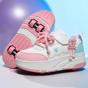 儿童可拆卸双用轮滑鞋 迪森途女童带轮子运动鞋 可爱图案暴走鞋