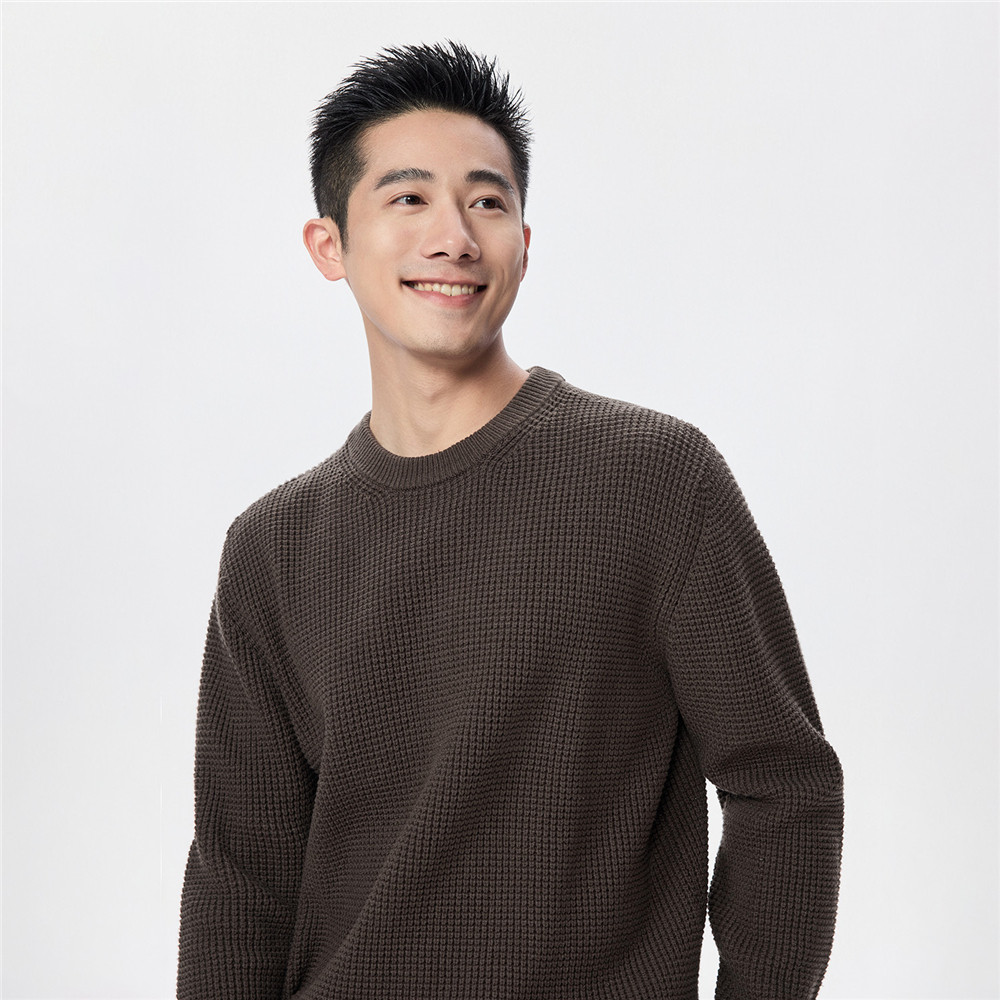 圆领套头针织衫 华夫格肌理男士 01055705 新款 佐丹奴混纺毛衣男春季