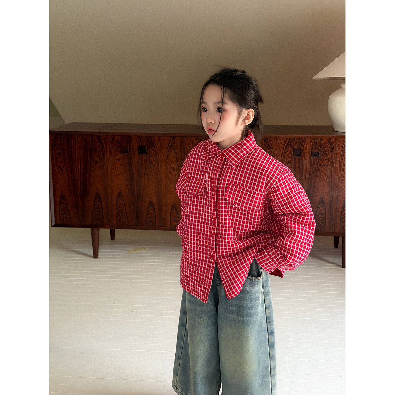 男士 翻领衬衫 FIVECM黑色格子长袖 2025秋冬宽松高级感上衣 5cm