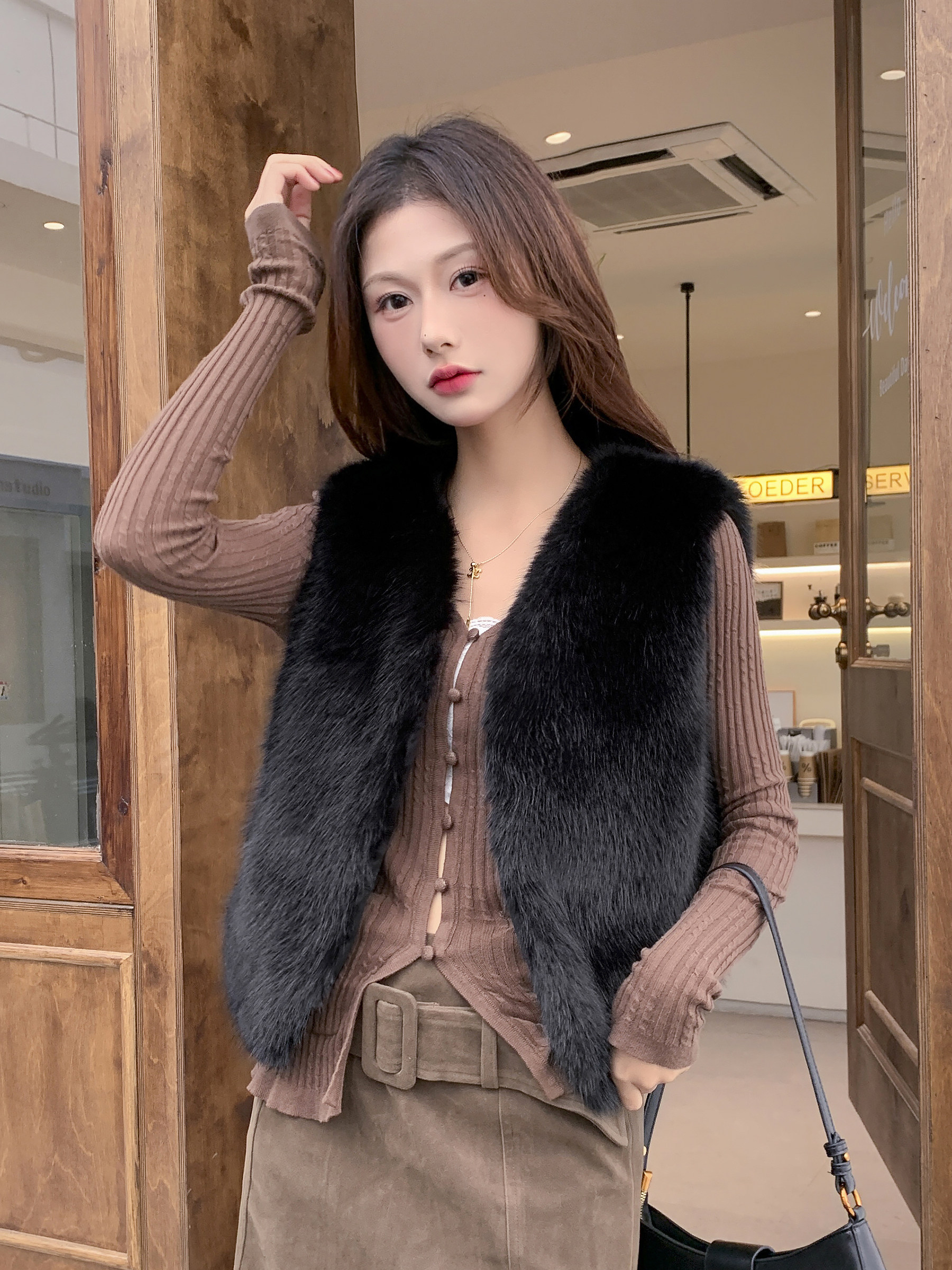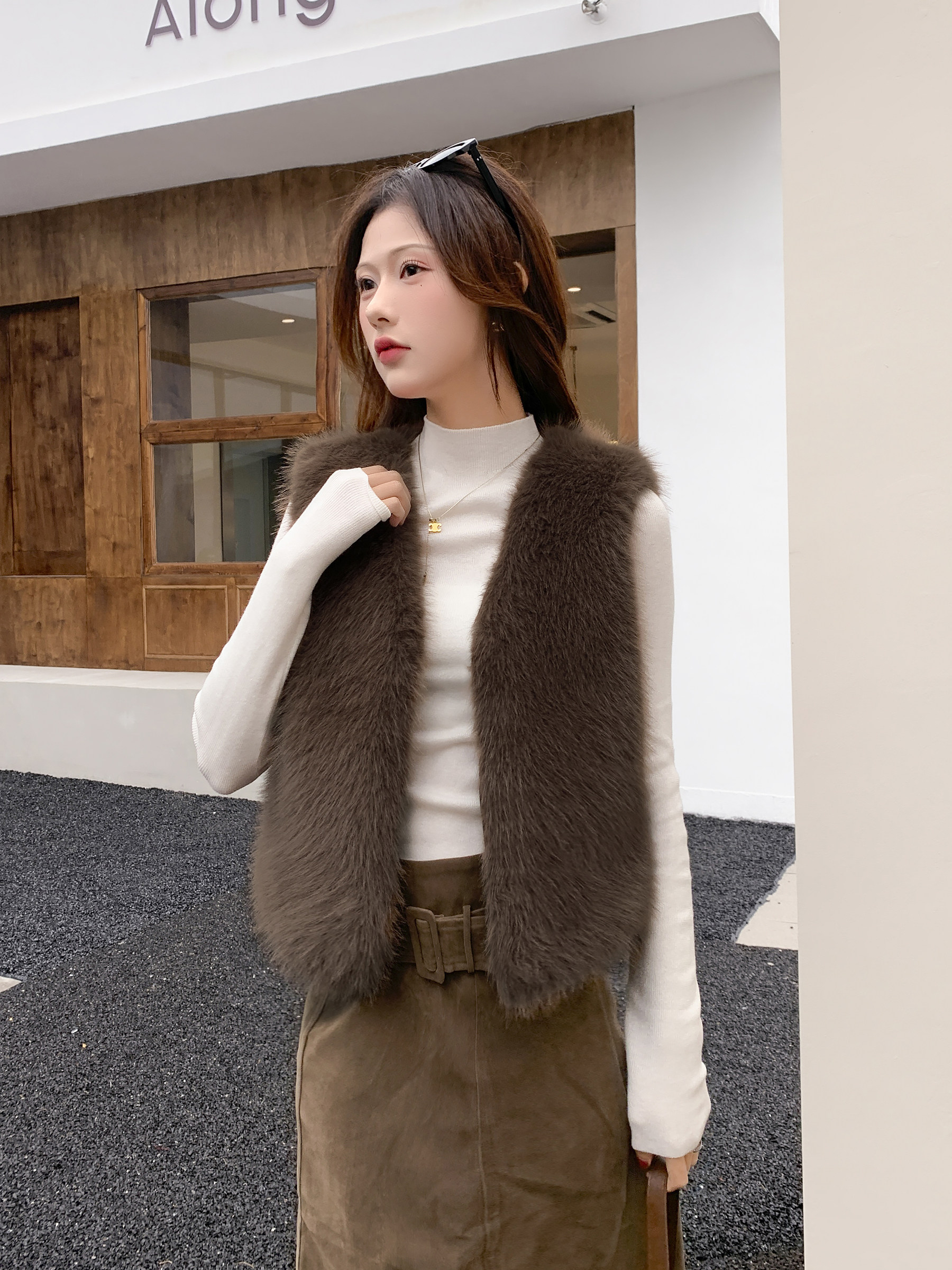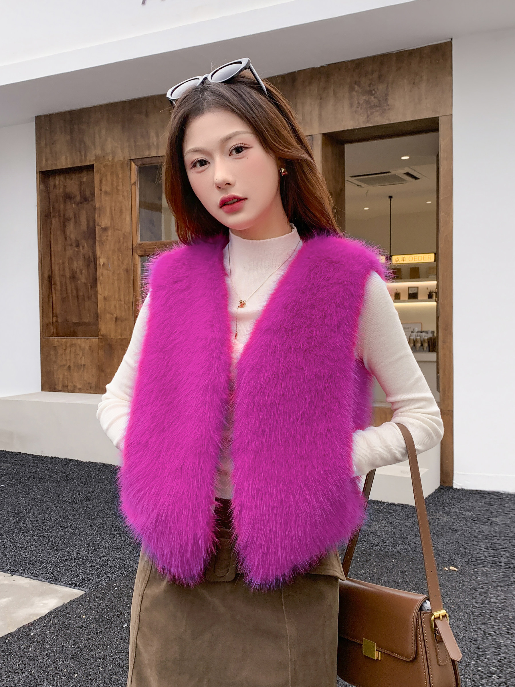时尚 显瘦坎肩仿毛马夹 小香风外穿小个子狐狸马甲女短皮草马甲爆款