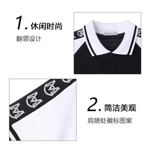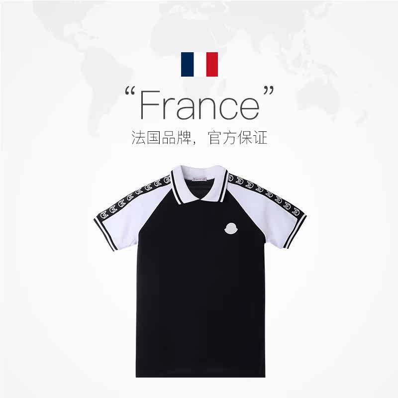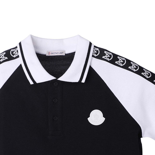 胸口徽标贴片条纹图案饰边袖 童装 Moncler 黑色棉质Polo衫 自营