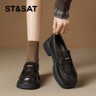 英伦风厚底小皮鞋 星期六黑色真皮乐福鞋 jk单鞋 春季 子 女2026年新款