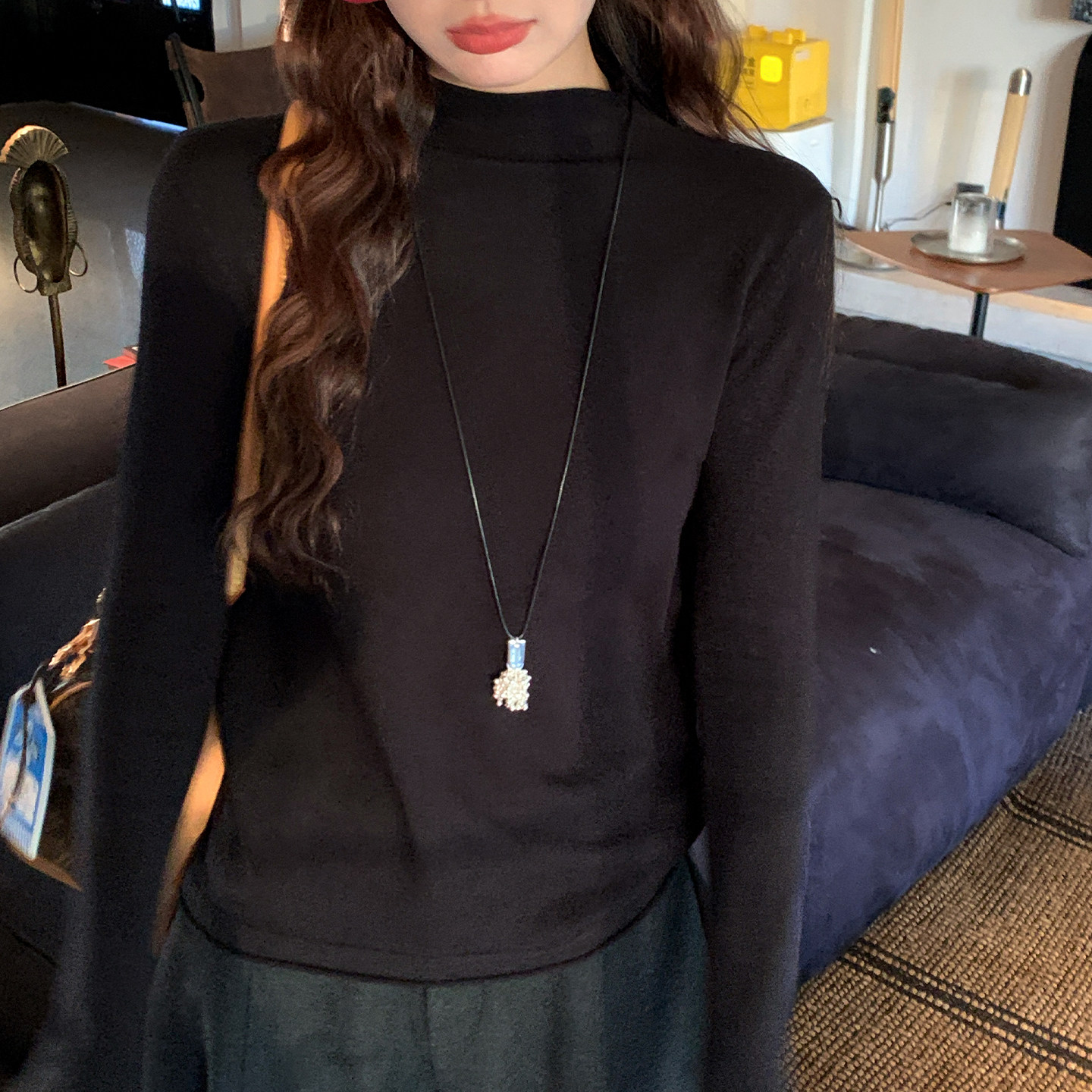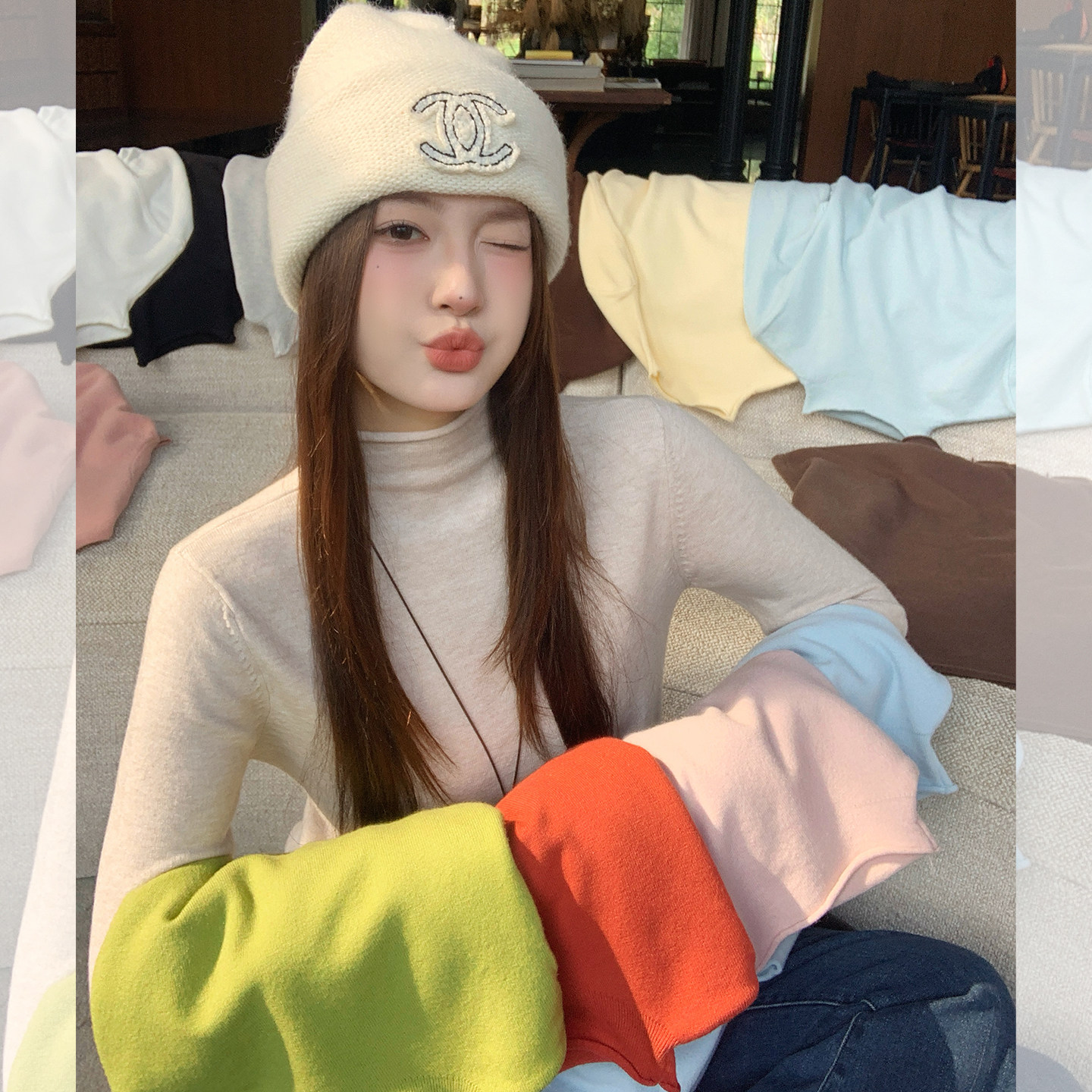 穿搭巨好看针织上衣 冬季 龙妹绿色半高领毛衣打底衫 女内搭2025新款